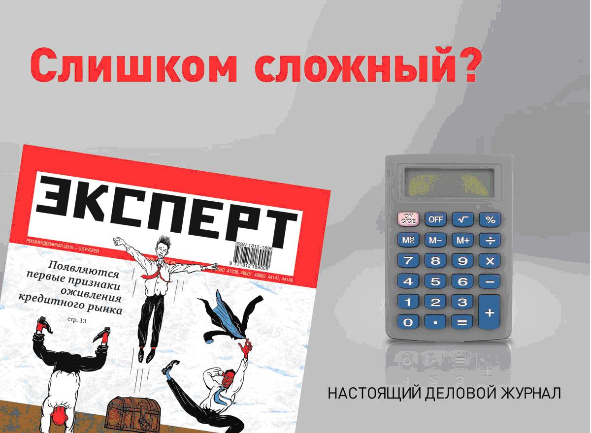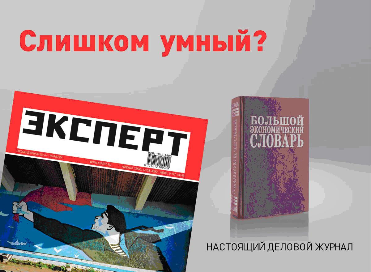 Ark Scholz & Friends Group сделали "Эксперт" слишком умнымДля журнала "Эксперт" стартовала федеральная рекламная кампания с концепцией - "Эксперт" для тебя - это слишком!". Кампания разработана Ark Scholz & Friends Group и пройдет в течение месяца в Москве, Санкт-Петербурге, Красноярске, Краснодаре, Тюмени и Екатеринбурге.По словам ее организаторов, целью данной рекламной кампании является: продвижение бренда "Эксперт", как национального интеллектуального лидера, увеличение продаж и рост рейтинга журнала, повышение уровня знания информационного носителя, создание большей привлекательности для лояльной аудитории. Кампания проходит на телевидении, радио, в Интернете, наружной рекламе и печатной прессе. |