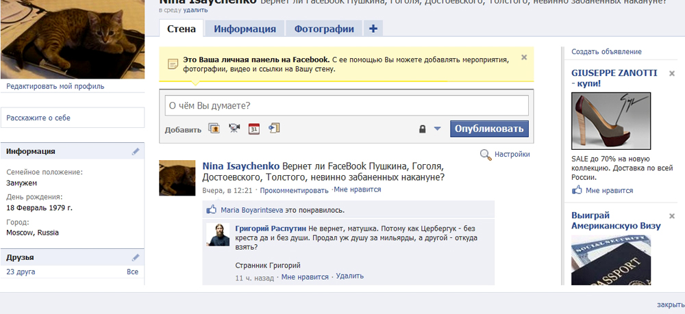 Главными героями вирусной кампании стали Гоголь и ДостоевскийНеобычную кампанию с использованием социальных сетей разработали и провели организаторы Книжного мультимедийного фестиваля BookMarket.В FaceBooke недавно появились аккаунты русских классиков: Н.В.Гоголя, А.С.Пушкина, Л.В. Толстого и Ф.М. Достоевского. "Классики" заполнили свои профили и начали комментить события, происходящие в России и в мире, френдить друзей и общаться друг с другом. За десять дней свыше десяти тысяч человек посетили странички "писателей", более тысячи человек стали их друзьями. Но российский Facebook вскоре забанил Достоевского, Толстого, Пушкина за то, что они фактические являются виртуальными профилями. Из-за этого в Сети разгорелся спор: нужно ли было так поступать с аккаунтами. Как выяснил Sostav.ru, странички русских классиков вели современные писатели и поэты, принимающие участие в фестивале. Стоит отметить, что на Facebook появился свежий "сторонник" фестиваля - Григорий Распутин. Можно предположить, что он также вскоре будет "забанен". Об эффективности такой кампании Sostav.ru поинтересовался у Ильи Корнеева, креативного директора агентства вирусного маркетинга "Аффект". Илья считает, что завести аккаунты стоит недорого и десять тысяч контактов качественной аудитории на Facebook для книжного фестиваля это хороший результат. Другой вопрос, - добавляет Илья, - это геотаргетинг и то, насколько продуманно он велся: какая часть аудитории, участвовавшей в кампании, была из Москвы и какая могла физически посетить фестиваль. По его мнению, у кампании прекрасная идея, но абстрактно очень многие идеи бывают отличными, но при этом важно просчитывать их прикладной смысл для конкретного продукта (события, услуги). Татьяна Полякова, Sostav.ru |