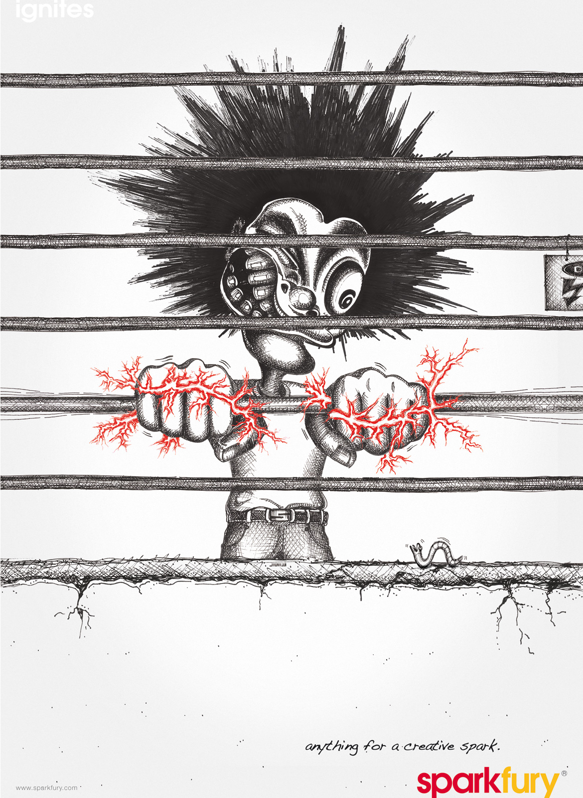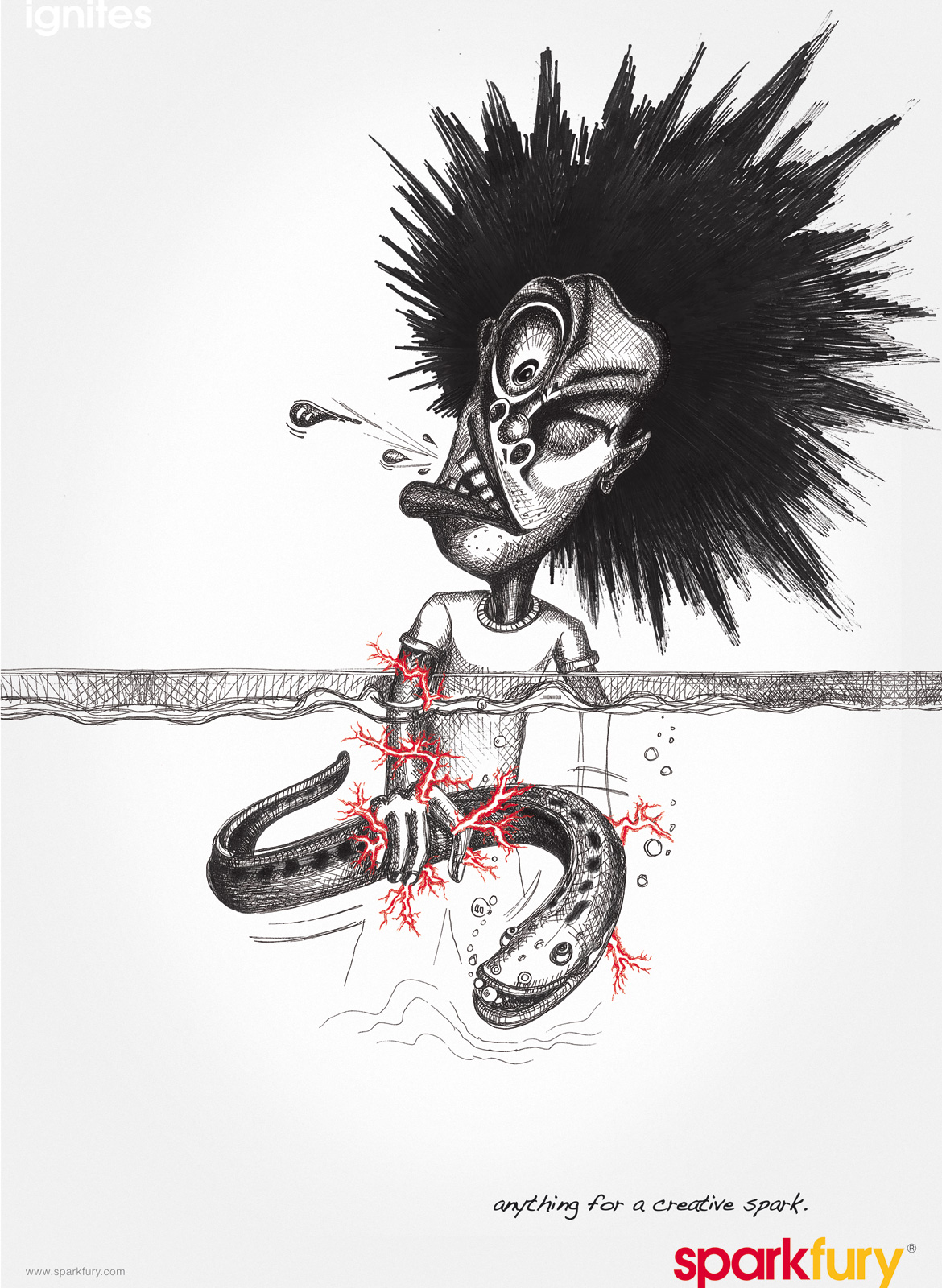 Сингапурские креаторы готовы на все ради вдохновенияСамопрезентация агентства Sparkfury Creative ConsultantsКреативное консультационное агентство Sparkfury из Сингапура выпустило серию принтов с целью саморекламы. Кампания обыгрывает название агентства и передает идею, что его работники готовы на все, чтобы у них зажглась творческая искра ради выполнения задания клиента, причем в прямом смысле. "Все что угодно ради искры креатива", - гласит слоган. Состав творческой группы Advertising Agency: Sparkfury Creative Consultants, Singapore Creative Director: Perry Goh Associate Creative Director: Llyon Lim Art Director: Perry Goh, Leo Apinan Copywriters: Llyon Lim, Joseph Seah Illustrator: Zeus |