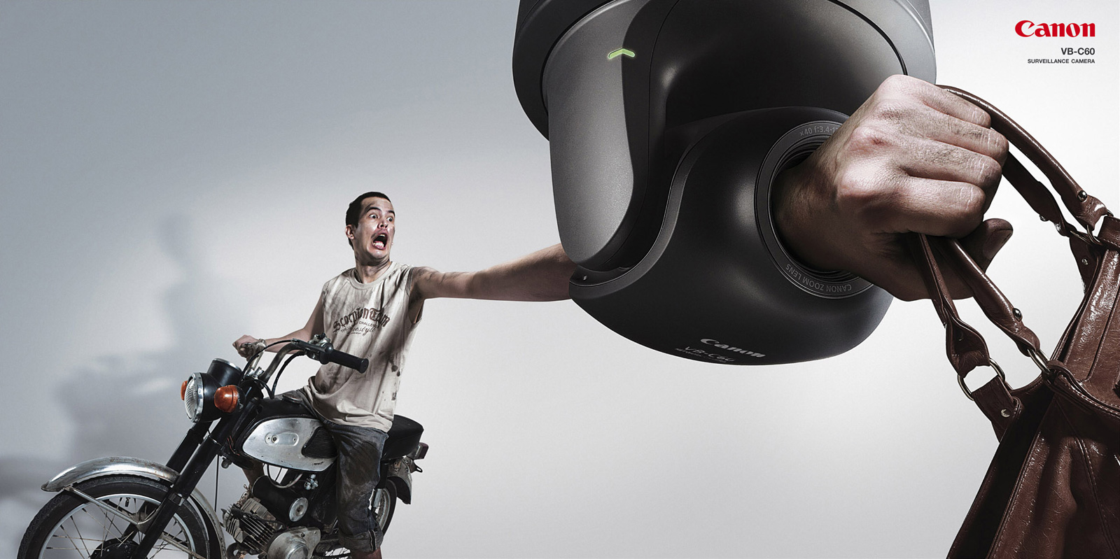Камера наблюдения Canon ловит преступников за рукуТаиландская реклама камеры Canon VB-C60Агентство Dentsu Bangkok представило интересный вариант рекламы для модели камер видеонаблюдения Canon VB-C60. Если креаторы из шанхайского Ogilvy & Mather пошли по пути превращения совершающегося преступления в театральное представление в рекламе систем наблюдения Midea., то работники Dentsu решили показать, что Canon вполне себе помогает поймать преступника. На принтах это отображено так, что камера, словно оковы, захватывает руки воров и убийц и не дает им скрыться. Отличная метафора, которая идеально подходит для подобной коммуникации. Состав творческой группы Advertising Agency: Dentsu, Bangkok, Thailand Creative Directors: Warunee Tanakijchumroon, Somkiat Kittipinijnanta Art Director: Ditdanai Nopparat Copywriter: Navanut Phlainoi Photographer: Chub Nokkaew Computer Artist: Chub Nokkaew Producer: Yuppadee Thongprasert |