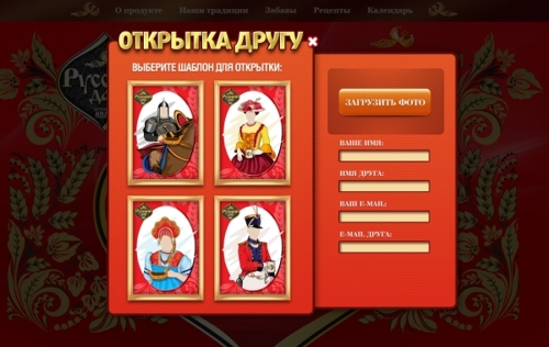 Сайт для кваса в русских традициях от агентства TRAFFICАгентство интерактивных маркетинговых коммуникаций TRAFFIC разработало промо-сайт www.russkydar.ru для бренда "Русский дар" компании PepsiCo.Как рассказывают в агентстве, при создании сайта необходимо было акцентировать внимание на том, что квас - это исконно русский напиток. Сайт выполнен с использованием мотивов хохломской росписи, традиционными цветами которой являются черный, красный и золотой. Роспись была специально создана для бренда заслуженным художником России Николаем Гущиным. На сайте пользователи могут не только почерпнуть полезную информацию о самом напитке, но и скачать целую книгу рецептов блюд, в приготовлении которых используется квас. Из раздела "Забавы" можно загрузить обои для рабочего стола, а также рингтон - одну из версий исполнения известной не только в России, но и за рубежом песни хора невольниц "Улетай на крыльях ветра" из оперы "Князь Игорь" Александра Бородина. "В качестве элемента интерактива для пользователей предусмотрена возможность создания специальных открыток - загрузив любое фото своих друзей, можно "нарядить" их в русские национальные костюмы, а также создать образ знатной дамы или гусара", - говорит креативный директор агентства Валерий Сивцев. |