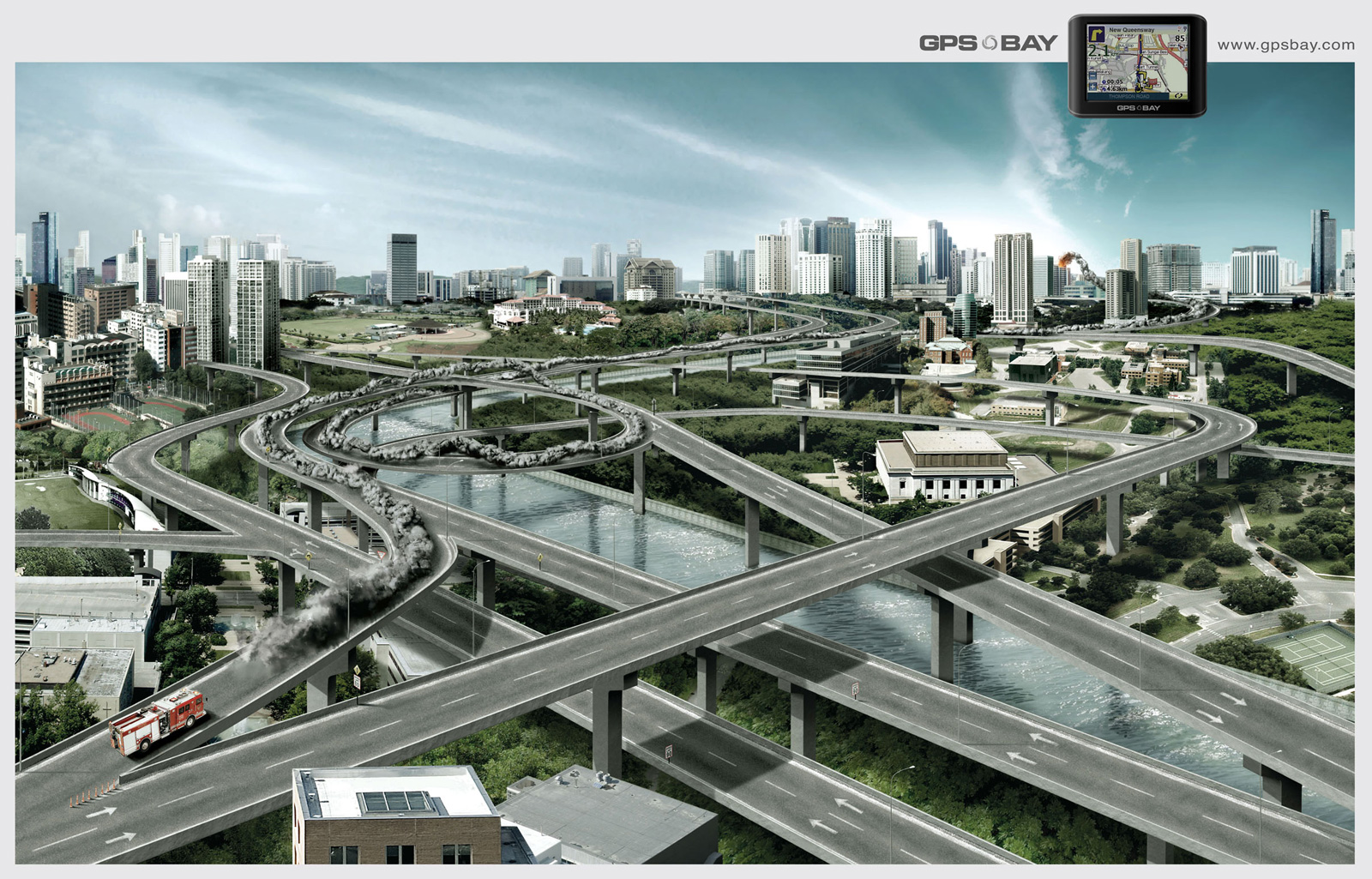 GPS Bay поможет найти путь на самых запутанных дорогахРеклама малазийского gps-навигатора для автоСингапурский офис McCann Erickson выпустил принт для компании, производящей автомобильные навигаторы GPS Bay. Реклама не предлагает какого-то нового решения в основной идее коммуникации и, как и все подобные проекты, демонстрирует, что с помощью навигатора гораздо проще попасть туда, куда нужно. Но для визуализации идеи рекламисты использовали пожарную машину, спешащую на вызов. Причем в качестве иллюстрации пути, предложенного навигатором, выступает шлейф из дыма от горящего здания. Состав творческой группы Advertising Agency: McCann Erickson, Singapore Executive Creative Director: Farrokh Madon Copywriter / Art Director: Chow Kok Keong Photographer: Cue Art |