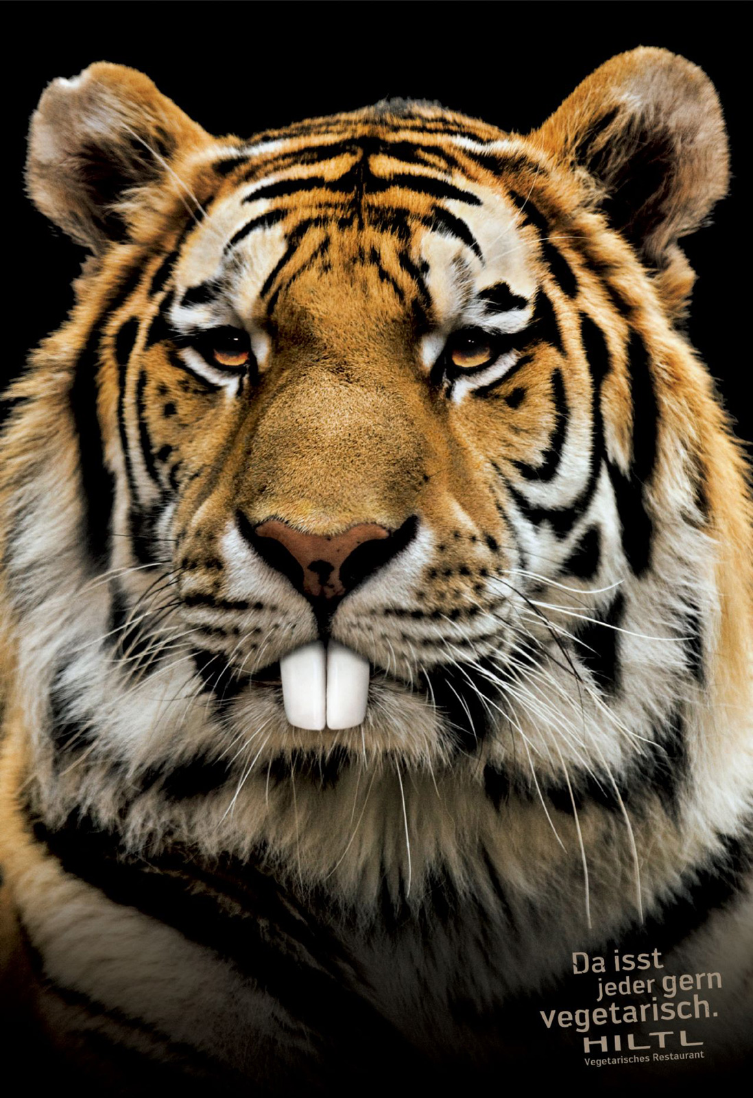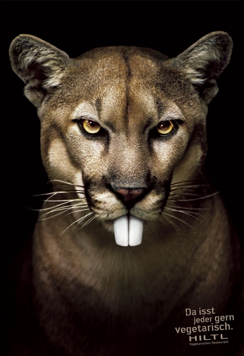 Вегетарианские хищникиРеклама вегетарианского ресторана HiltlШвейцарское рекламное агентство Ruf Lanz представило серию принтов для рекламы вегетарианского ресторана Hiltl. Чтобы подчеркнуть, что меню ресторана придется по вкусу даже тем, кто предпочитает мясо, рекламисты изобразили грозных хищников с нетипичными для них выступающими кроличьими зубами, вместо клыков. Слоган кампании поясняет изображение: "Потому что каждому понравится вегетарианская кухня". Состав творческой группы Advertising Agency: Ruf Lanz, Zurich, Switzerland Creative Directors: Markus Ruf, Danielle Lanz Art Directors: Marcel Schlifle, Lorenz Clormann Copywriter: Maas Torsten |