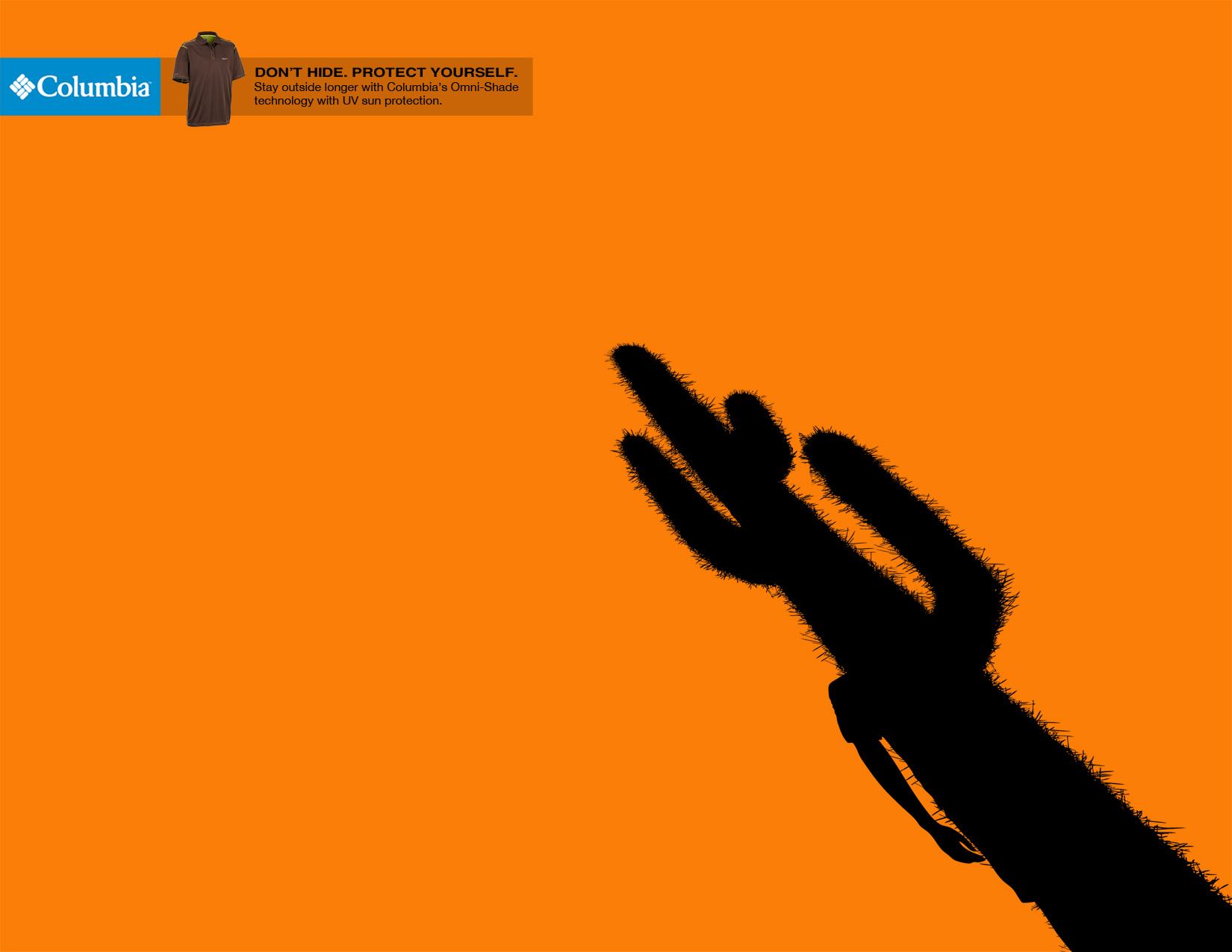 С Columbia можно не прятаться в тениНовая реклама одежды Omni-ShadeЧилийское Prolam Y&R продолжает рекламировать одежду спорт-бренда Columbia, созданную по технологии Columbia Omni-Shade, которая защищает человека от ультрафиолетового излучения солнца. В прошлом году агентство выпустило печатную кампанию, подчеркивающую, что с одеждой Columbia, солнце не может причинить никакого вреда человеку. Также недавно чилийские рекламисты взялись и за продвижение одежды бренда, предназначенной для других погодных условий. Новая кампания сделана просто и ярко - на принтах изображены исключительно тени гор или растений, среди которых можно заметить и тень робко прячущегося от солнца человека. Однако слоган призывает: "Не прячьтесь. Защитите себя". Состав творческой группы Advetising Agency: Prolam Y&R, Santiago, Chile Executive Creative Director: Tony Sarroca Creative Directors, Art Directors: Rodrigo Richards Art Director: Fernando Espinosa Copywriter: Gonzalo Ferrada Retoucher: Gonzalo Arevalo Account manager: Jorge Pimstein |