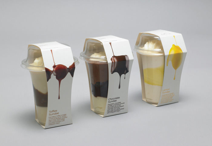 Жидкий дизайн упаковки мороженого Waitrose SundaeРазработка студии Nelson AssociatesБританская студия Nelson Associates разработала дизайн для мороженого Waitrose Sundaes. Согласно брифу, упаковка должна успешно отражать вкус мороженого внутри. Для создания упаковки был привлечен фотограф Джон Росс, с помощью которого удалось создать главный элемент дизайна - объемные, словно бы облитые сиропом лимон, шоколад и конфета-"ириска", которые и отражают вкус мороженого. Дизайн выглядит чисто и просто, но в то же время заметен на полке, так что производитель рассчитывает на хорошую прибыль. Хотя если не приглядываться, то с разу понятен лишь вкус лимонного мороженного, тогда как остальные сорта заставляют вчитываться в текст на упаковке. |
