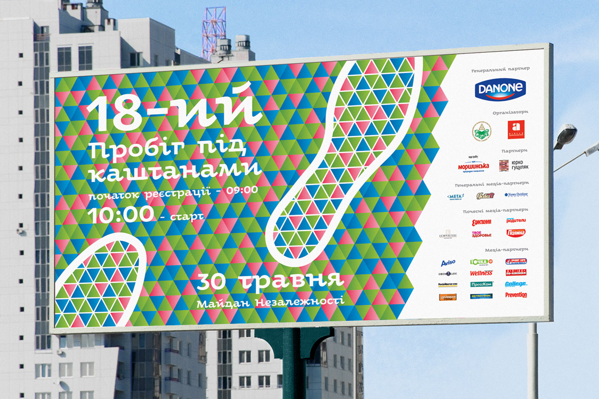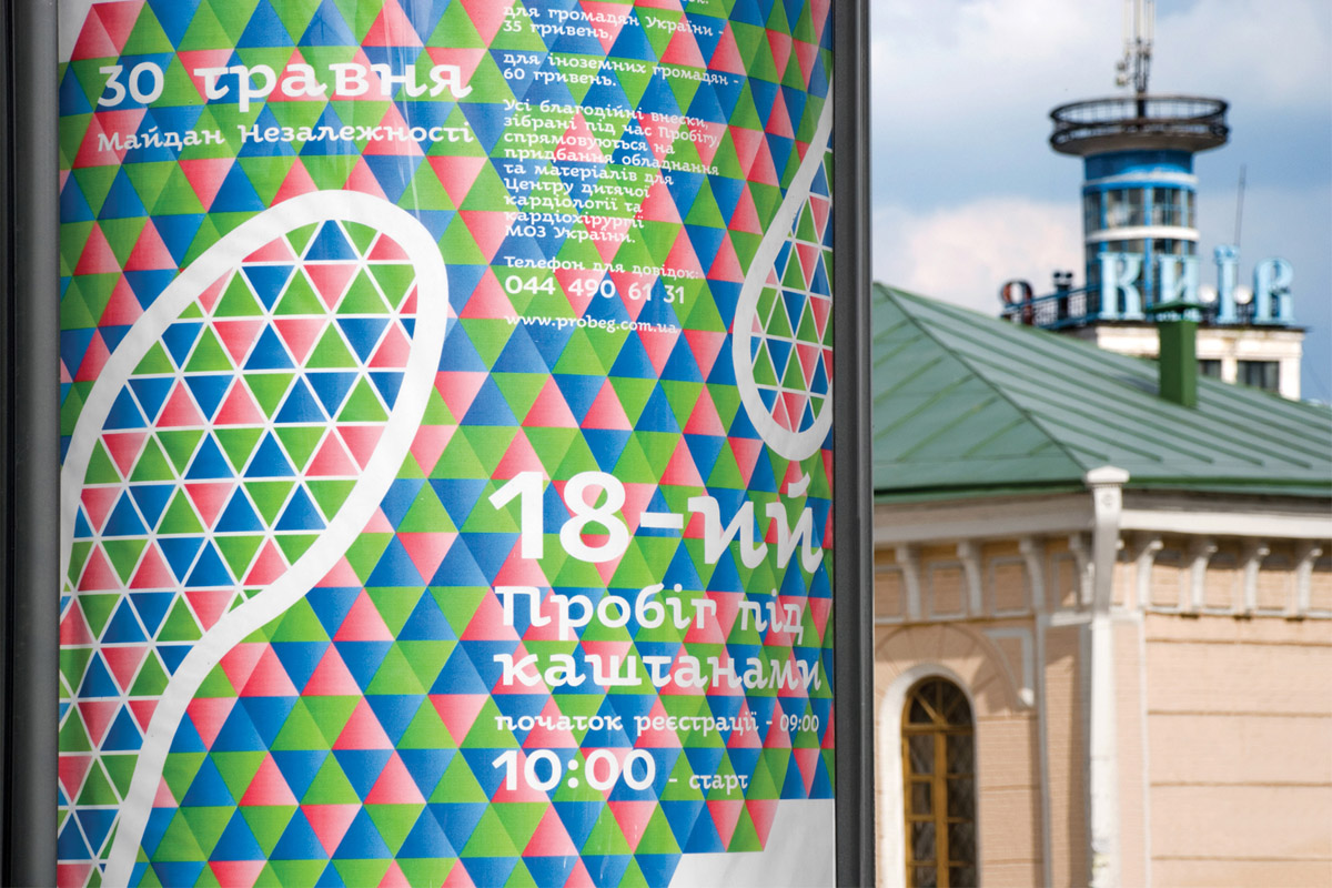 "Пробег под каштанами" получил свой фирменный стильСтудия графического дизайна Юрка Гуцуляка разработала key visual для массовой спортивной акции "18-го Пробега под каштанами", которая ежегодно проходит в рамках Дня Киева на Майдане Незалежности. Все собранные в рамках проекта средства передаются в Центр кардиологии и кардиохирургии детей раннего возраста МЗ Украины для приобретения необходимого оборудования и расходных материалов.Как говорят в Студии, концепция должна была объединить понятия: спорт, город Киев, праздник, семья, общество, а key visual - легко адаптироваться под множество коммуникационных составляющих проекта: борды, сити-лайты, плакаты, макеты в прессу, флаеры, листовки, бланки, официальный сайт, банерную рекламу и т.д. В результате в Студии графического дизайна Юрка Гуцуляка решили использовать узор из равносторонних треугольников - характерный прием графической интерпретации "свечей" каштана, который уже исторически сформировался и стал неотъемлемой узнаваемой частью символики нашего города. Такой же узор часто используется на подошвах спортивной обуви. Шрифт "Оксана" Андрея Шевченко - вполне украинский и чрезвычайно "человечный". Разработанный стиль, считают в Студии, является очень гибким и универсальным, другими словами "живым". Он не ограничивает, а наоборот - открывает новые возможности. |