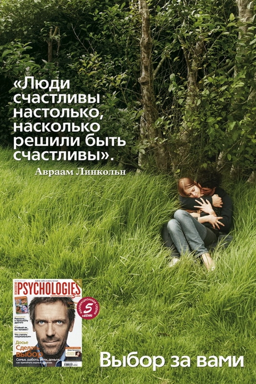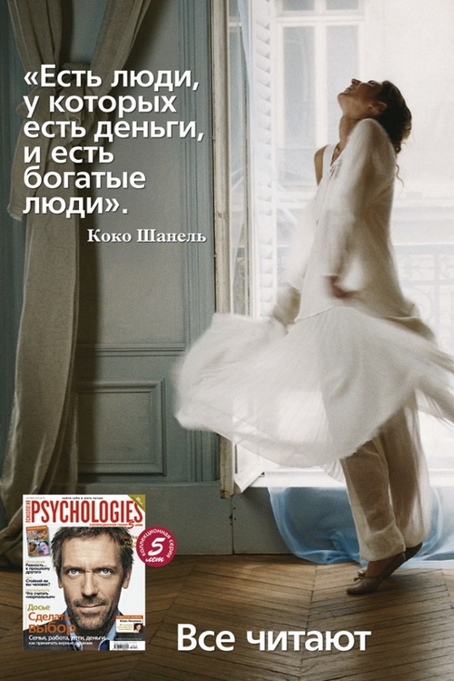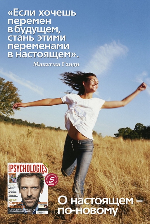 Publicis United использовало знаменитые цитаты в рекламе журналаВ конце сентября 2010 года в Москве стартовала рекламная кампания журнала PSYCHOLOGIES. Пять имиджей и пять цитат, адресованных разным группам целевой аудитории издания, появились на центральных улицах и оживленных магистралях города.Концепция рекламной кампании разработана командой PSYCHOLOGIES совместно с агентством PUBLICIS UNITED. Рекламные имиджи и цитаты отражают такие ключевые ценности журнала, как уверенность в себе, вера в собственные силы, открытость сердца, радость в творческом труде и красота внутренней гармонии. Пять ответов PSYCHOLOGIES мотивируют читателя по-новому взглянуть на мир, найти себя и сделать свой выбор. "Наша кампания адресована, в первую очередь, современным женщинам с активной жизненной позицией, которые успешно и творчески реализуют себя во всех аспектах жизни. Наша аудитория сердцем открыта всему доброму и новому, всегда готова меняться, чтобы сделать свою жизнь лучше. Позиция журнала звучит открыто, ярко, немного провокационно и, безусловно, искренне. Пять лет назад, запуская журнал в России, мы лишь ощущали новый тренд вдумчивой заботы о себе и своем мире. С тех пор среди нас появилось гораздо больше людей, которым важно осознанно и с удовольствием выстраивать свою жизнь, отношения, реализовывать свои мечты и таланты. За прошедшие пять лет мы убедились, что чтение PSYCHOLOGIES стало в России своеобразным знаком позитивного отношения к жизни среди современных образованных людей. Это мы и постарались отразить в нашей кампании, выстроенной в форме "пароль - ответ". Где паролем стало близкое нам по сути и энергетике высказывание одного из известных людей прошлого, а ответом - емкое и уверенное утверждение от самого журнала. Пять сочных эмоциональных имиджей и пять цитат в полной мере отражают ключевые ценности PSYCHOLOGIES", - комментирует Анна Клопова, издатель журнала PSYCHOLOGIES. Основной всплеск рекламной кампании придется на середину октября 2010 года, когда в Москве реклама журнала будет представлена на перетяжках, сити-форматах вдоль основных городских проспектов, видеоэкранах в центре города. Первый этап кампании продлится до конца октября. Начиная с ноября, рекламная кампания вступит во вторую стадию и задействует также печатные издания и радиостанции. В декабре кампания PSYCHOLOGIES изменит свои акценты - на этот раз главной ее темой станет пятилетний юбилей журнала в России. В 2011 году кампания продолжит набирать свои обороты и выйдет в регионы.