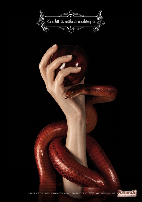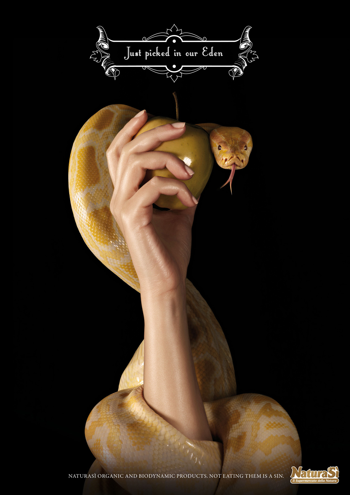 Магазин NaturaSi Organic обыгрывает грехопадение ЕвыРеклама утверждает, что не есть их фрукты - грешноOgilvy Rome создало для магазинов NaturaSi Organic, которые производят и продают различные натуральные продукты, печатную кампанию, отсылающую к библейской легенде о грехопадении первых людей. Принты изображают змею, обвивающую руку с яблоком, которое традиционно ассоциируется с плодом Древа Познания, вкусив которого Адам и Ева были изгнаны из Эдема. Причем реклама основывается не на каком-то негативном значении ветхозаветной истории, а наоборот таким образом показывает, что фрукты NaturaSi Organic столь же вкусны и чисты, как в и раю. Слоган кампании указывает, что не есть их - вот настоящий грех. Состав творческой группы Advertising Agency: Ogilvy Rome, Italy Creative Director: Elisa Pazi Art Director: Chiara Catalani Copywriter: Elisa Pazi, Michela Paccova Photography: Winkler+Noah |
