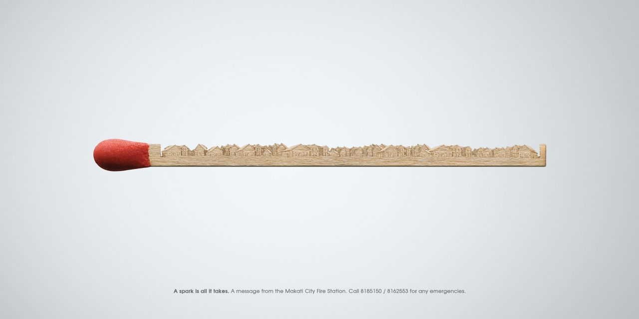Чтобы сжечь город, нужна одна спичкаРеклама пожарной охраны филиппинского города МакатиАгентство DDB DM9JaymeSyfu из Манилы создало интересный принт рекламной кампании пожарной охраны города Макати. Все что изображено на нем - это спичка. Но если присмотреться, то видно, что вся он словно бы состоит из небольших деревянных домиков вплоть до зажигательной головки. "Все что нужно - это искра", - замечает слоган. Так пожарные решили напомнить людям, как легко можно устроить пожар по неосторожности и что в этом случае необходимо немедленно звонить им. Состав творческой группы Advertising Agency: DDB DM9JaymeSyfu, Manila, Philippines Executive Creative Directors: Merlee Jayme, Eugene Demata Art Director: Eugene Demata Copywriter: Biba Cabuquit Photographer: Ruben dela Cruz Illustrators: Eugene Demata, Allan Montayre |