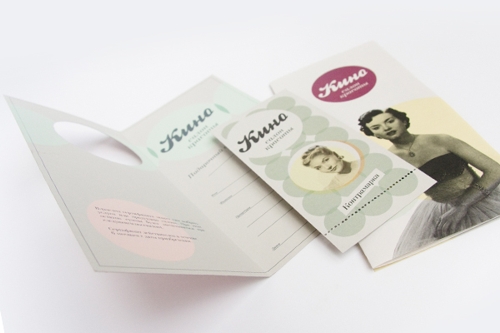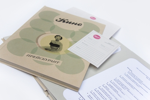 "КИНО" - салон красоты бизнес-класса, придерживающийся в своей работе принципа "доступная роскошь для каждого", предлагающий достойный сервис и продукты по уходу, которым действительно отдают предпочтение звезды кино и музыки. Это салон для людей, привыкших к определенному уровню сервиса и ценящих свое время. В основу визуальной концепции лег системный элемент круга, на основе которого был построен паттерн. Идея знака-это и след от прожектора, и пудреница ? одна из важнейших вещей в женской сумочке. Начертание в логотипе будто сошло со старой киноафиши, оформленной вручную. Брендинговым агентством "Брендсон" был разработан и изготовлен полный пакет фирменной полиграфии, где все элементы будто пропитаны духом "ретро". Цвета, шрифты, орнаменты и фотографии - все выдержано в стиле изысканности.