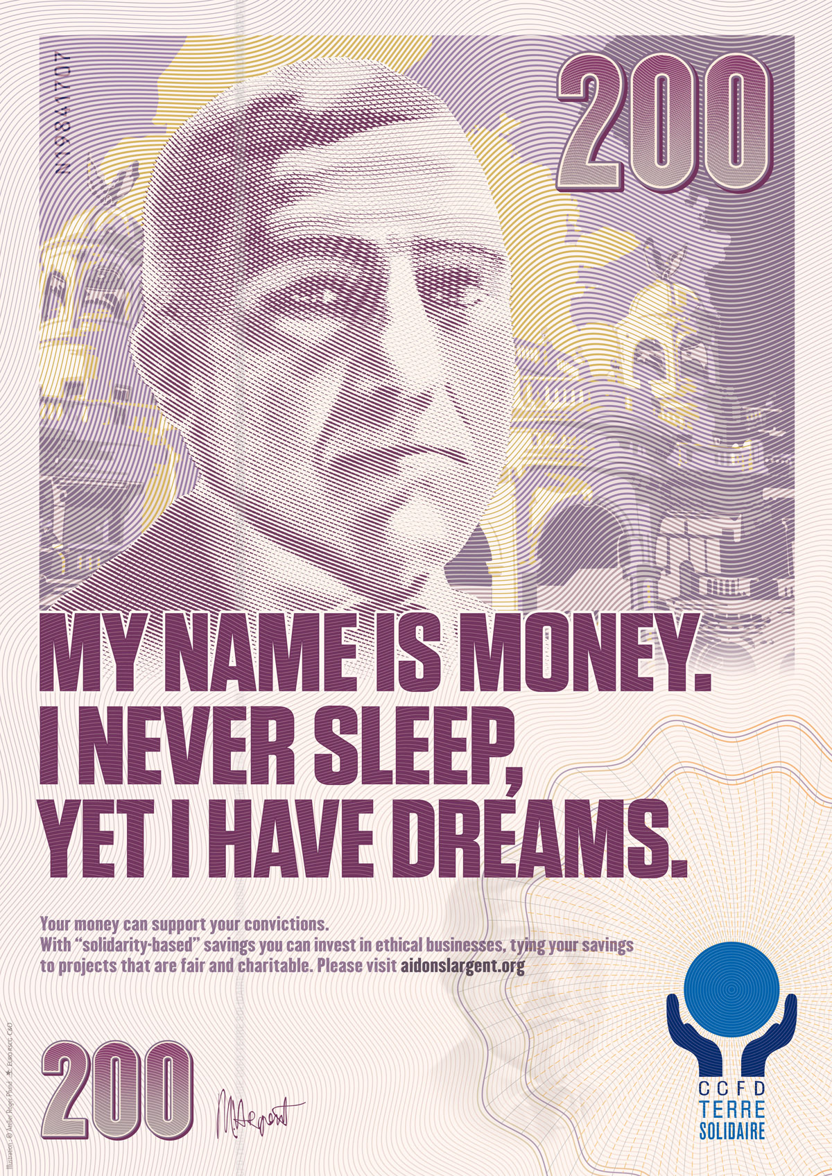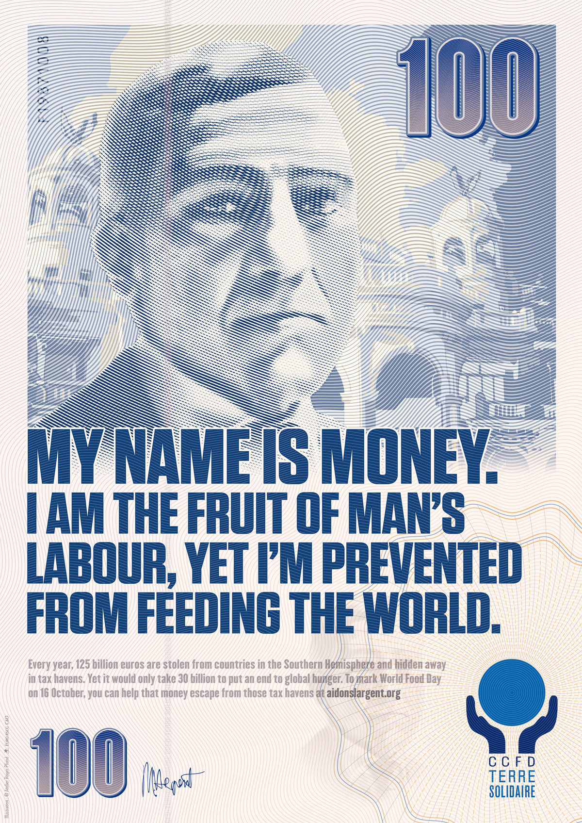 Деньги призывают к развитию в рекламе CCFD-Terre SolidaireКампания для французской католической организацииCCFD-Terre Solidaire - это католическая организация, деятельность которой направлена на помощь экономического и социального развития южных и восточных стран. Агентство Euro RSCG C&O выпустило серию принтов для организации, в поддержку ее борьбы с самой большой проблемы развивающихся стран - налоговыми прибежищами. Так называют территории, где некоторые налоги, например на роскошь, очень низки или же вовсе не взимаются. Реклама представляет собой изображение денежных купюр, которые сами рассказывают о финансовых проблемах имеющихся в южных странах, и о том, что каждый год там скрывается до 125 миллиардов евро, тогда как всего 30 могли бы помочь решить проблему мирового голода. Состав творческой группы Advertising Agency: Euro RSCG C&O, Suresnes, France Creative Directors: Olivier Moulierac, Jerome Galinha Art Director: Julien Saurin Copywriter: Nicolas Gadesaude Director : Herv? Plumet Illustration : Atelier Roger Pfund Agency producer: Corinne Dutoit - Costa Agency account managers: Agathe Bousquet, Benoit Loze, Camille Cros |