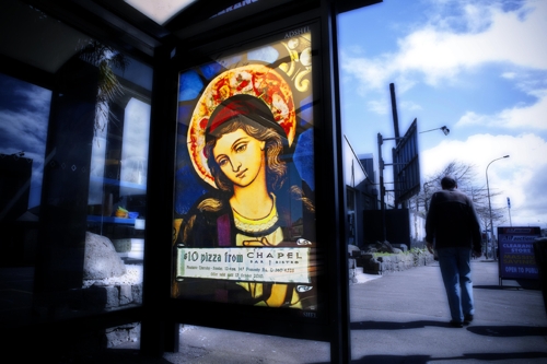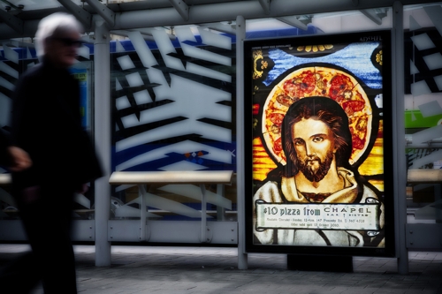Иисус и дева Мария зовут на пиццу за 10 долларовВ Новой Зеландии сделали рекламы в виде церковных витражейВ Новой Зеландии довольно либеральное отношение к религии. Это особенно хорошо заметно по местной рекламе, которая часто использует религиозные мотивы, причем в такой форме, которую особо религиозные люди могут назвать кощунственной. Яркий пример - проект бренда молодежной одежды Eshe и сайта Muckmouth.com. В рекламе бара Chapel, то есть часовня или церковь, креаторы из Ogilvy обошлись без карикатур. Они решили привлечь внимание к бару, разместив на автобусных остановках самые настоящие витражи с изображением Иисусу и девы Марии, которые привлекают внимание к тому, что в Chapel Bar можно отведать пиццы всего за 10 долларов. Состав творческой группы Advertising Agency: Ogilvy, New Zealand Account Director: Paul Manning Executive Creative Director: Damon O\'Leary Copywriter: Richard Loseby Art Director: Martin Hermans Typographer: Adrian Fitzgerald |