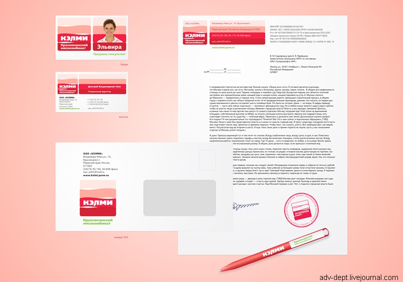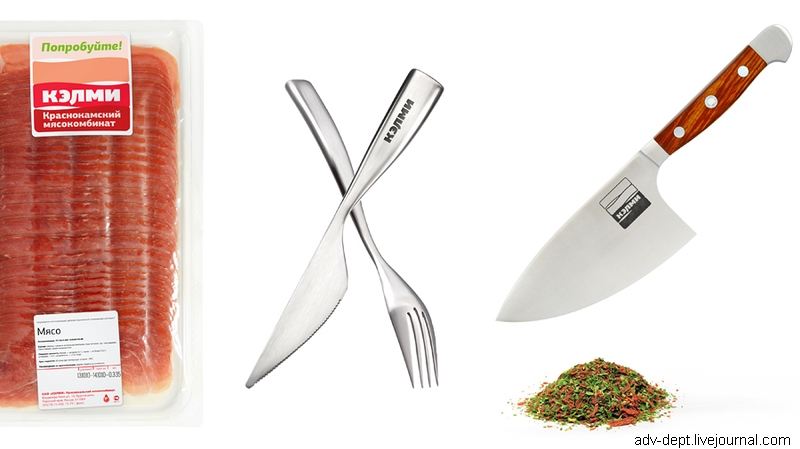 "Мясная" упаковка от "Корпоратива"В рекламном департаменте "Корпоратив" завершена работа над стилем оформления упаковки для полуфабрикатов Краснокамского мясокомбината "Кэлми". Как сообщается в блоге агентства, в основу символики легла фактура настоящего мяса, из которого производятся котлеты, ромштексы, ежики, фрикадельки и другие продукты под брендом "Кэлми".Создатели новой упаковки считают, что символика хорошо узнается на любых размерах маркировки, начиная от самых неудобных, таких как наклейка на упаковку и заканчивая большими полноцветными картонными гильзами. Кроме того, внедрение нового стиля оформления упаковки может стать первым шагом на пути к смене фирменного стиля мясокомбината. Главное, говорят в агентстве, не бояться и не относиться к рестайлингу вот так: |