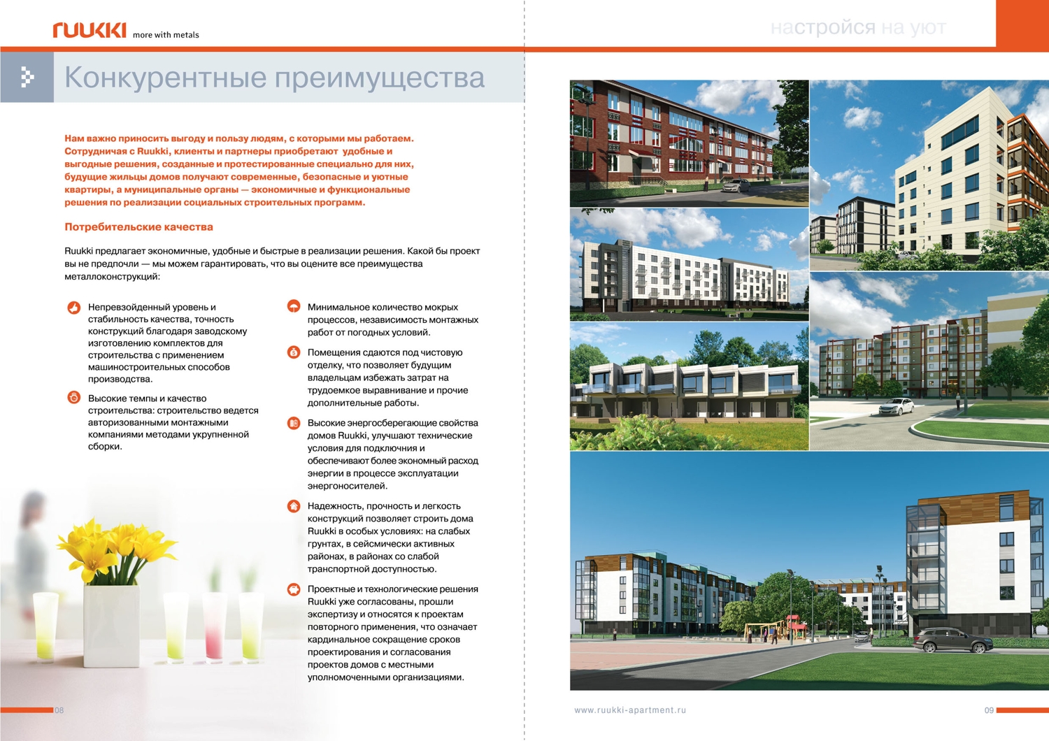 "Икраткое" работает под финский металлРекламное Агентство "Икраткое" завершило работу над созданием буклета для финской компании Ruukki, являющейся поставщиком систем, комплексных решений и конструкций из металла.Данный буклет представляет активно развиваемое Ruukki строительство жилых домов с применением металлических каркасов. Этот способ давно является приоритетным в Европе и многих других странах мира, и во многом превосходит строительство из железобетонных конструкций. На страницах буклета представлена информация о компании Ruukki, история строительства с применением металлоконструкций, а так же многочисленные конкурентные преимущества этого способа. Так же компания презентует несколько проектов жилых домов, спроектированных командой профессионалов Ruukki на основе именно этой современной и прогрессивной технологии строительства. Как говорят в агентстве, дизайн буклета выполнен в презентабельном, европейском, современном стиле. |
