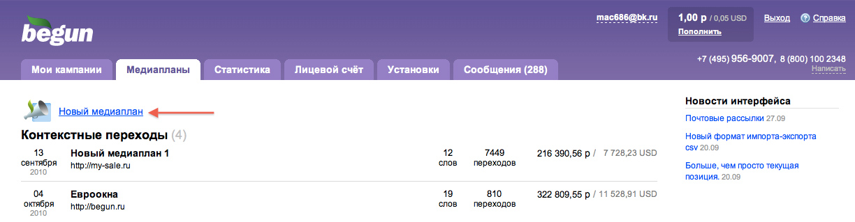 Оператор контекстной рекламы "Бегун" запустил новый сервис, позволяющий клиентам самостоятельно прогнозировать бюджеты текстовых рекламных кампаний. Медиапланер позволит автоматически оценить расходы на рекламу как в результатах поиска, так и на партнерской сети "Бегуна".