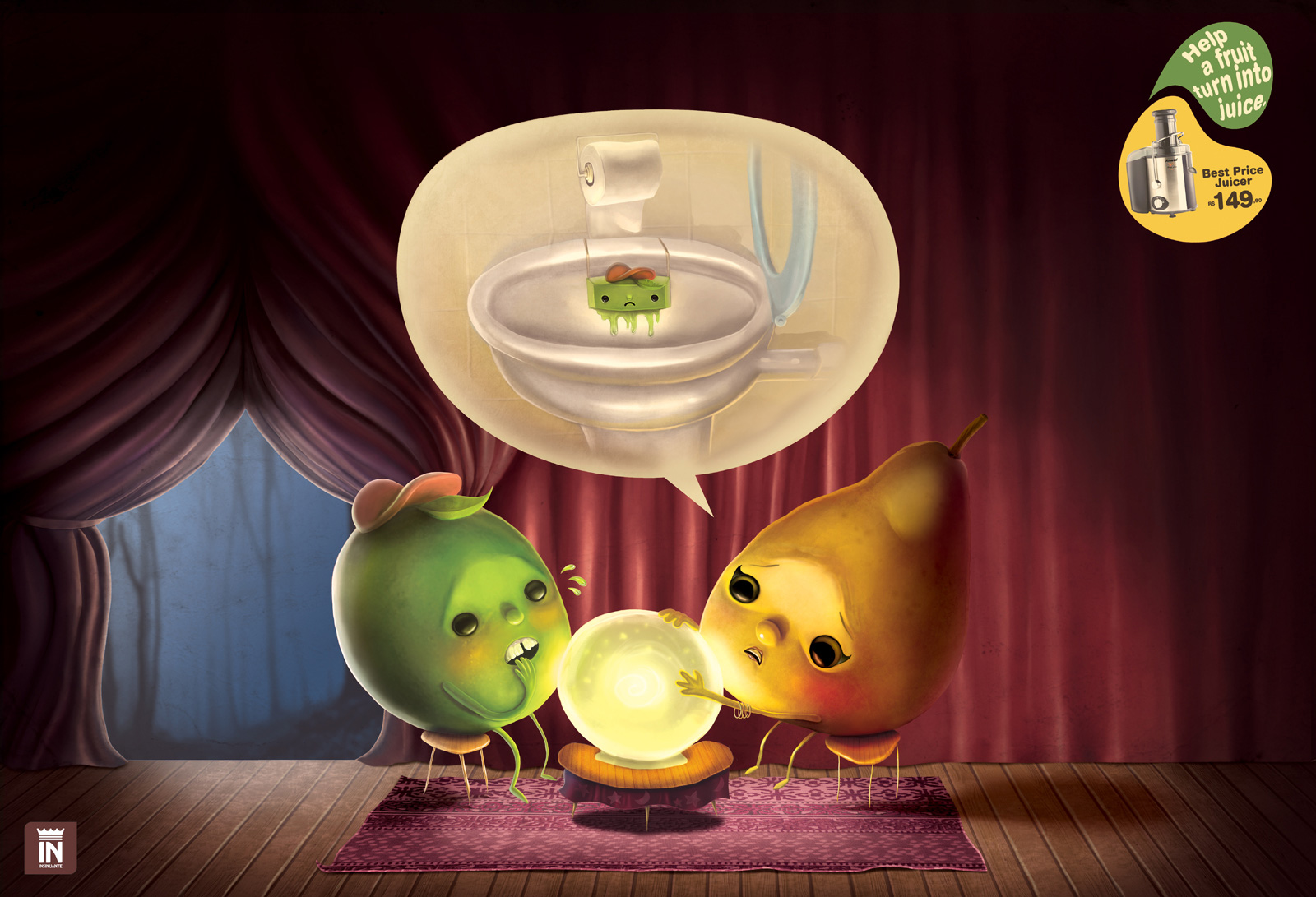 Фрукты хотят быть соком, а не ароматизатором презервативаРеклама соковыжималки Best Price JuicerБразильское агентство Propeg выпустило забавную рекламу недорогой соковыжималки от компании Insinuante, стоимость которой не превышает 149 бразильских реалов. Коммуникация строится на том, что различные ягоды и фрукты приходят к предсказателю, которые рассказывает им о незавидной судьбе - стать ароматизатором для презервативов или же освежителей для унитаза. Разумеется, такая перспектива не радует одушевленные фрукты и потому реклама призывает помочь им, купив Best Price Juicer от Insinuante. Состав творческой группы Advertising Agency: Propeg, Bahia, Brazil Creative Director: Emerson Braga Art Director: Edson Rosa Copywriter: Emerson Braga Illustrator: Edson Rosa Additional Credits: Ana Luiza Almeida, Carlos Pereira |