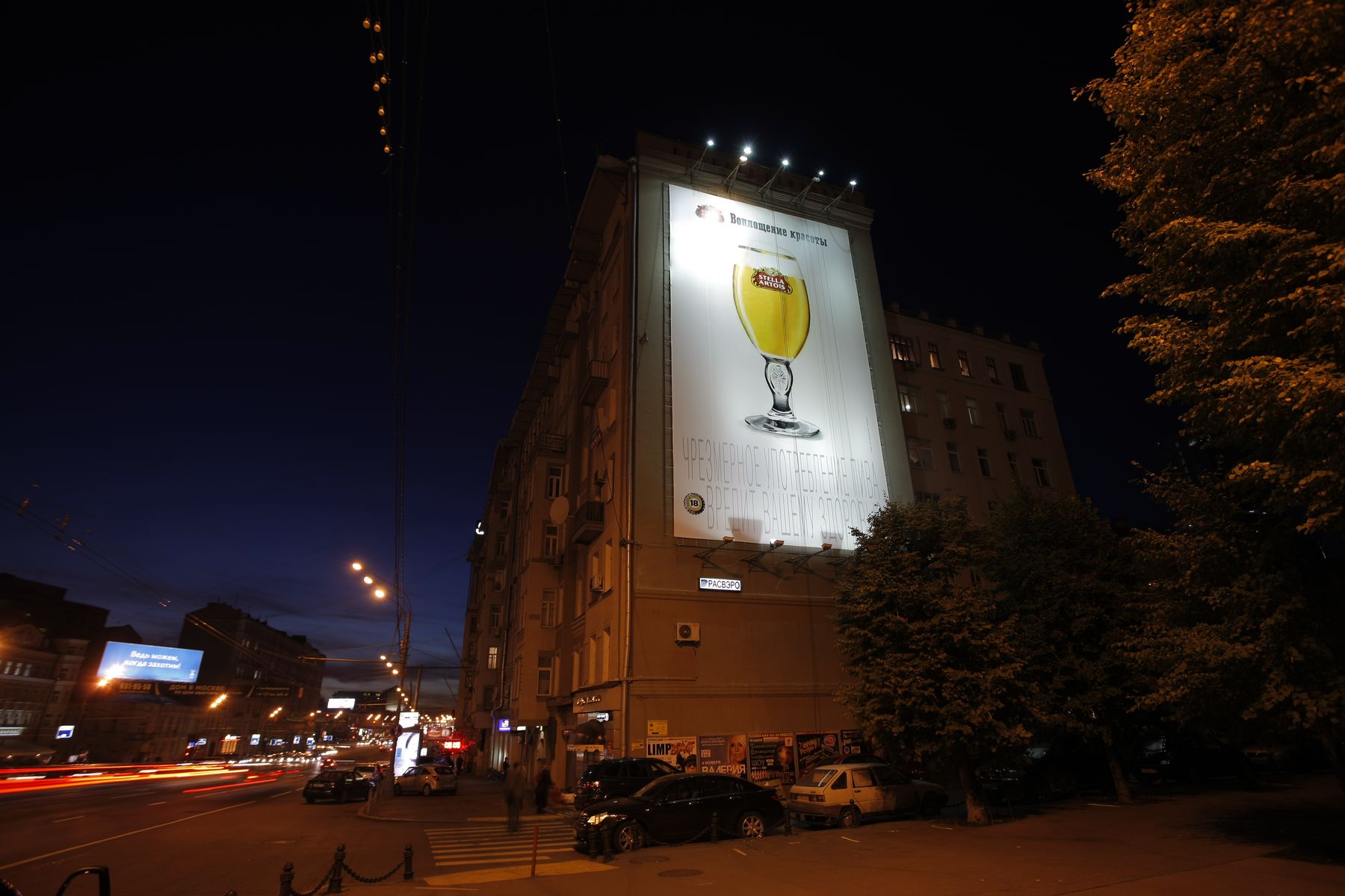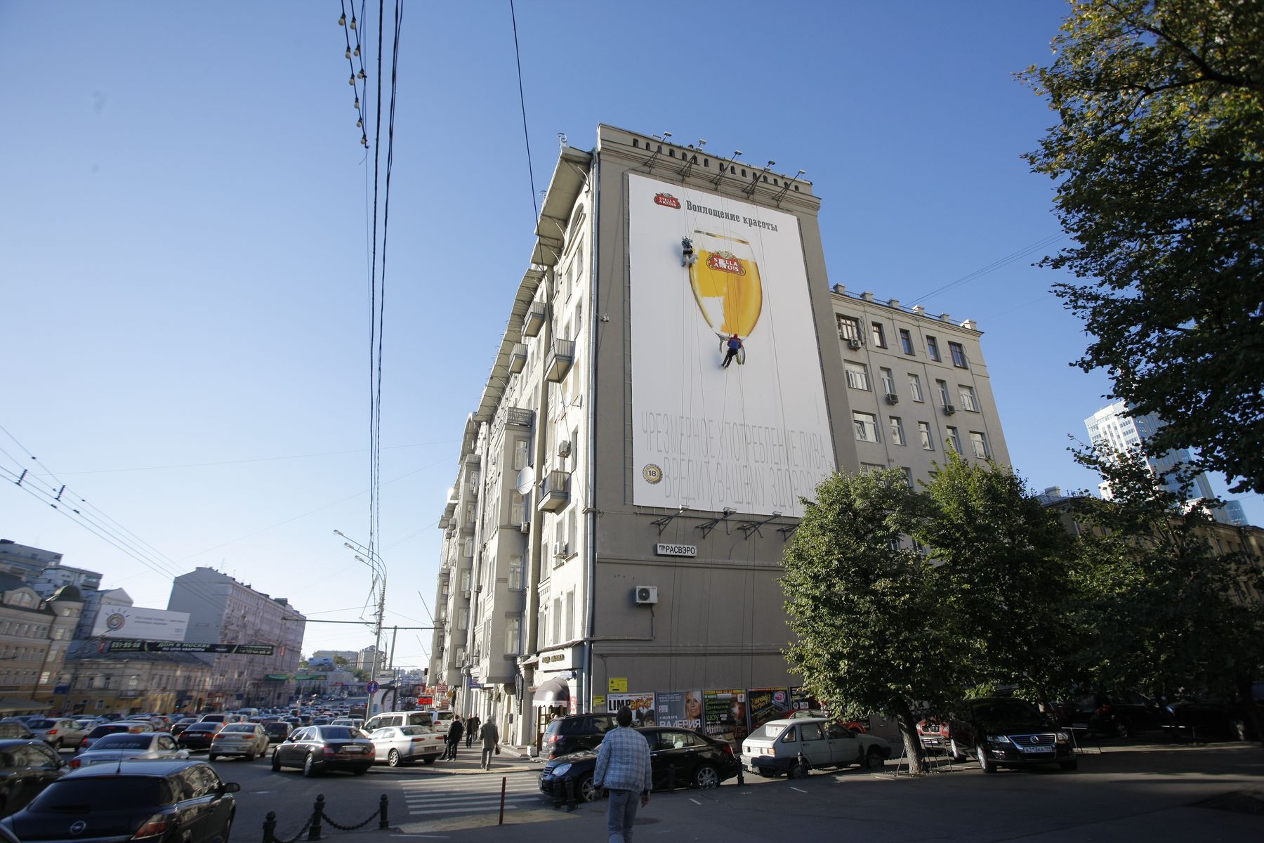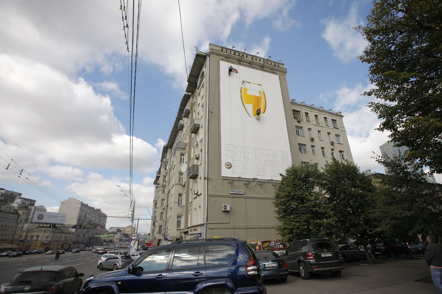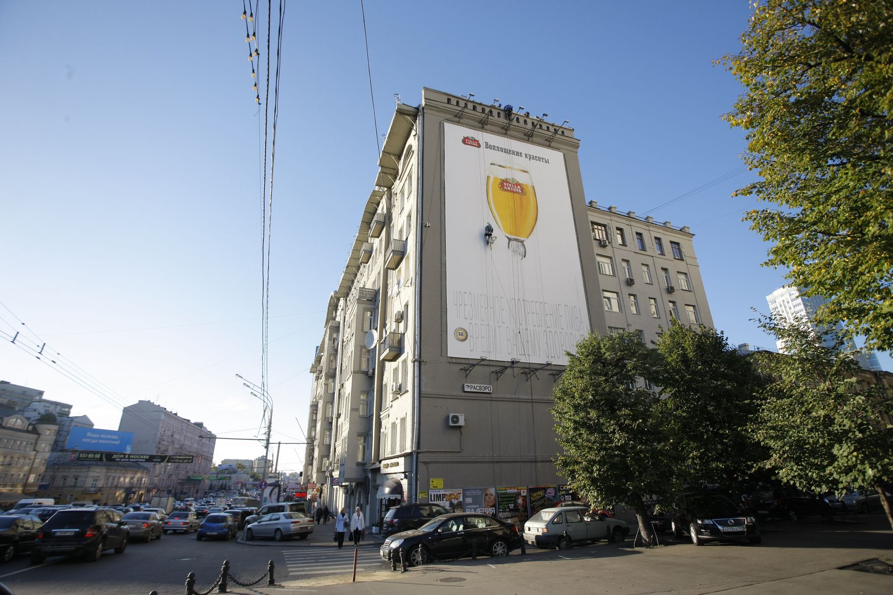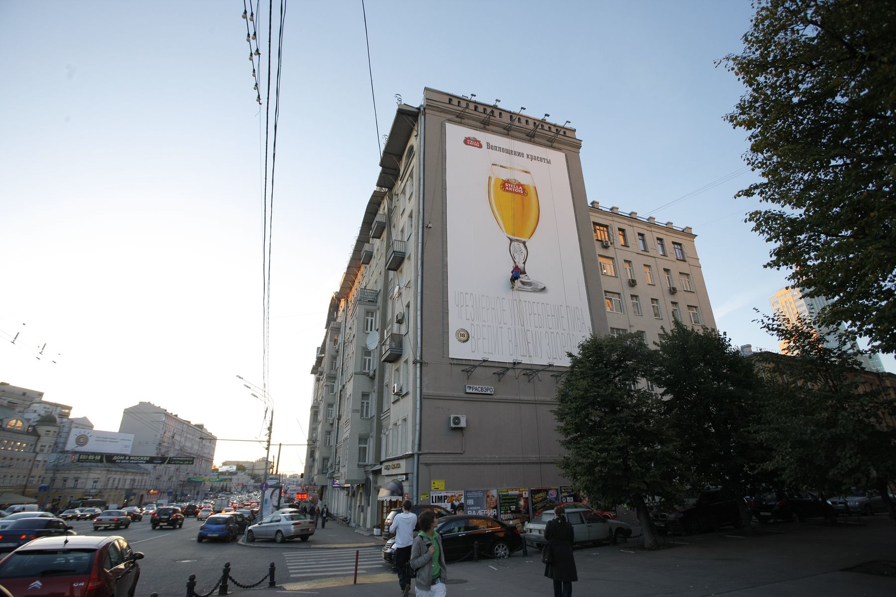 UM и Stella Artois налили пиво на десятиметровой высотеКомпания Sun InBev провела нестандартную рекламную кампанию в наружной рекламе по продвижению одного из ведущих брендов компании - Stella Artois.Кампания явилась частью программы World Draught Masters, одной из задач которой является популяризация девятишагового ритуала налива пива Stella Artois. В рамках Чемпионата Мира по наливу пива Stella Artois 2010 состоялся граффити-перформанс, где профессионалы высотного стрит-арта в мельчайших деталях воссоздали бокал Stella Artois на брендмауэре в 190 квадратных метров, размещенном на Садовой-Спасской, 19. Всего за время проведения рекламной кампании было создано 3 брендмауэра. Каждый новый холст заново расписывался художниками непосредственно на стене высотного дома. Подобные проекты стали традицией бренда. Так, в прошлом году виртуальный перфоманс 9-шагового ритуала Stella Artois в рамках проекта Up There украсил одну из кирпичных стен нью-йоркского Сохо.
