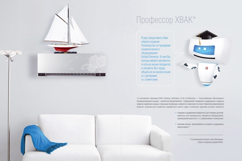 Рассказ о климатической технике от бренд-персонажа профессора ХВАКаРекламное агентство "Икраткое" завершило работу над созданием Sales Book для компании United Elements Group, занимающейся продажей климатической техники.Этот буклет является руководством по продаже климатического оборудования и представляет весь ассортимент компании, и дает полное представление не только о каждом бренде, но и каждом продукте, который предлагает United Elements своим дилерам. В качестве центральной темы буклета была выбрана тема морского бриза, свежести и парусов, наполненных легким, чистым воздухом. Кроме того, на страницах буклета этот образ транслируется и на домашнюю атмосферу - именно так, считают в агентстве, климатические системы, предлагаемые United Elements, привносят в помещения свежесть моря, олицетворяя уют, максимальный комфорт и удобство. В "Икраткое" говорят, что выстроенный ассоциативный ряд передает потенциальному клиенту ту концепцию чистоты и экологичности, которую компания и ее партнеры-производители всегда принимают как одно из основных требований к своим продуктам. Еще один акцент буклета - это специально созданный для данного издания персонаж, профессор ХВАК (HVAC - Heating, Ventilation, & Air Conditioning - отрасль, в которой работает компания), который является гидом по буклету. Он выражает основную идею продукта, тем самым расставляя акценты и усиливая впечатление. Весь буклет сегментирован по соответствующим разделам - в зависимости от продукта, ценовой категории, а также разделен на две части - ориентированную на дилеров и ориентированную непосредственно на потребителя. Состав творческой группы: Креативный директор: Никита Рубцов Дизайнер: Петр Кузнецов |