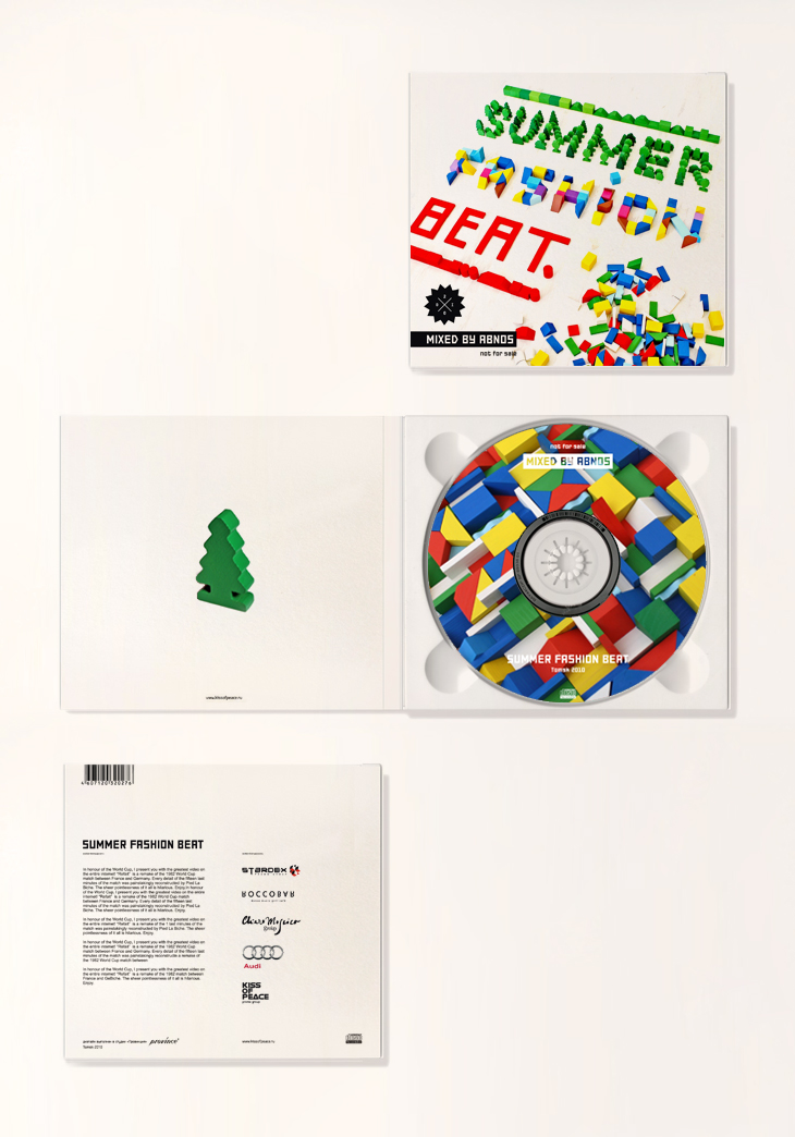 37 распакованных коробок с игрушкам понадобилось для дизайна альбомаВ дизайн-студии Province разработали упаковку диска Summer fashion beat для dj Abnos. На диске музыка в стиле электро и tech house.Как рассказывают в агентстве, здесь любят в работе пользоваться прежде всего руками, а не компьютером. Живые предметы дают, на взгляд креаторов, больший эмоциональный посыл. В фильтрах и готовых шрифтах нет столько индивидуальности сколько в работе, которую ты потрогал. Для проекта было распаковано 37 коробок детских деревянных игрушек. Состав творческой группы: Менеджер проекта - Фоминых Алена Дизайнеры: Раудсепп Денис, Башев Денис |