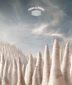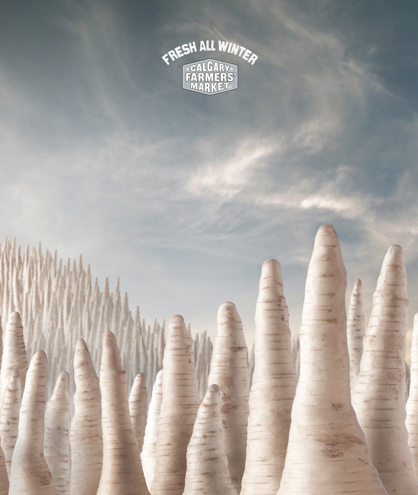 Волшебные пейзажи из свежих овощейНовая печатная кампания Calgary Farmers MarketКанадское агентство Wax выпустило новую рекламную кампанию для фермерского универмага в Калгари, которая оповещает всех, что там можно в течение всей зимы найти свежие фрукты и овощи. Креаторы решили разнообразить свои обычные сюжеты для подобного рода кампаний и изобразили настоящие неземные пейзажи с помощью различных овощей, так что на первый взгляд кажется, что это не реклама продуктового универмага, а иллюстрации к научной фантастике. Слоган проекта незамысловат: "Свежее всю зиму". Состав творческой группы Advertising Agency: WAX, Calgary, Canada Creative Director: Joe Hospodarec Art Director: Brian Allen Copywriter: Stephanie Bialik Photographer: Ken Woo |