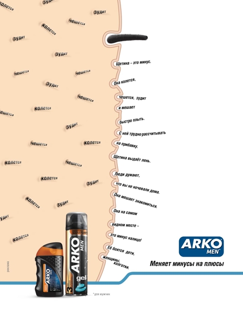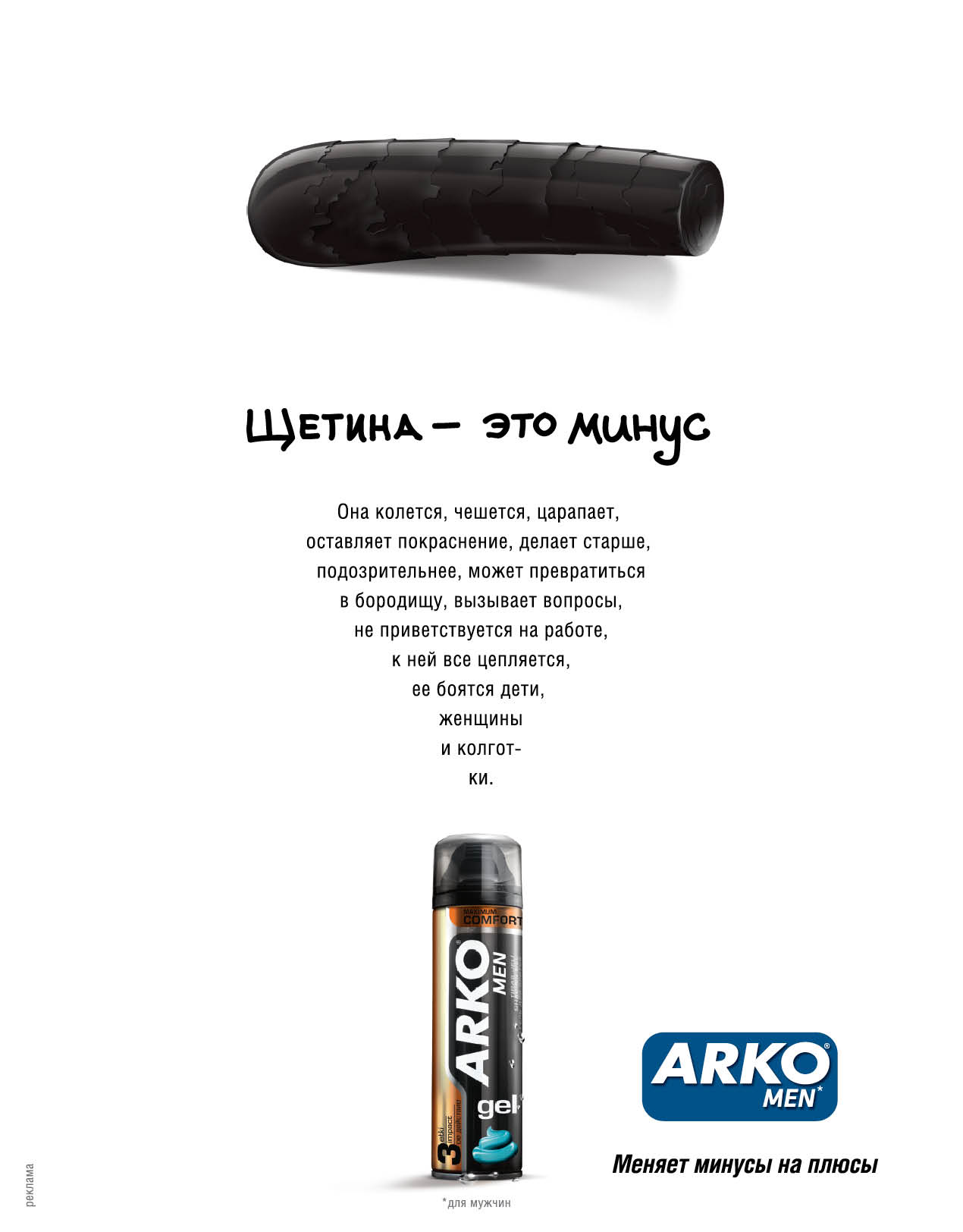 Znamenka и Arko за бритье с юморомСтартовала рекламная кампания для бренда ARKO, направленная на решение следующих задач: омолодить бренд, выделиться среди сильных конкурентов Gillette и Nivea, а также поддержать перезапуск упаковки.Как говорят в агентстве, разработанная коммуникация существенно отличается от позиционирования основных конкурентов, которые подчеркивали в своих коммуникациях функциональность, экспертность и часто использовали спортивную тематику. В силу выбранной маркетинговой стратегии компания EVYAP приняла решение избежать прямого столкновения со своими конкурентами на их же территории. Поэтому была выбрана эмоциональная платформа. Позиция ARKO и основа коммуникационной кампании - Real Care for Real man. Gillette и Nivea заставляют мужчин бриться ради бритья, из-за хорошего лезвия и мягкого крема. ARKO освобождает мужчин от этой навязчивой идеи и признает себя посредником между мужскими инсайтами и реальностью. Реальность такова, что бриться, так или иначе, придется, а выбор чем и когда - за потребителем. ARKO - инструмент контроля ситуации. Язык - юмор, правда, мужские поступки. Кампания состоит из серии телевизионных роликов и принт-макетов, объединенных общим слоганом "ARKO. Меняет минусы на плюсы!". Размещение в медиа планируется осуществить в два этапа, первый из которых ноябрь-декабрь 2010г. На телевидении ролики выходят в эфир на каналах НТВ, ТНТ, Россия 2, ТВ 3, ТВ Центр и 2х2. Поддержка в прессе осуществляется через журналы Top Gear, Men's Health, Maxim, Playboy, Популярная механика, National Geographic и За Рулем. Коммуникационную стратегию и креативную концепцию кампании разработало Агентство маркетинговых коммуникаций Znamenka.