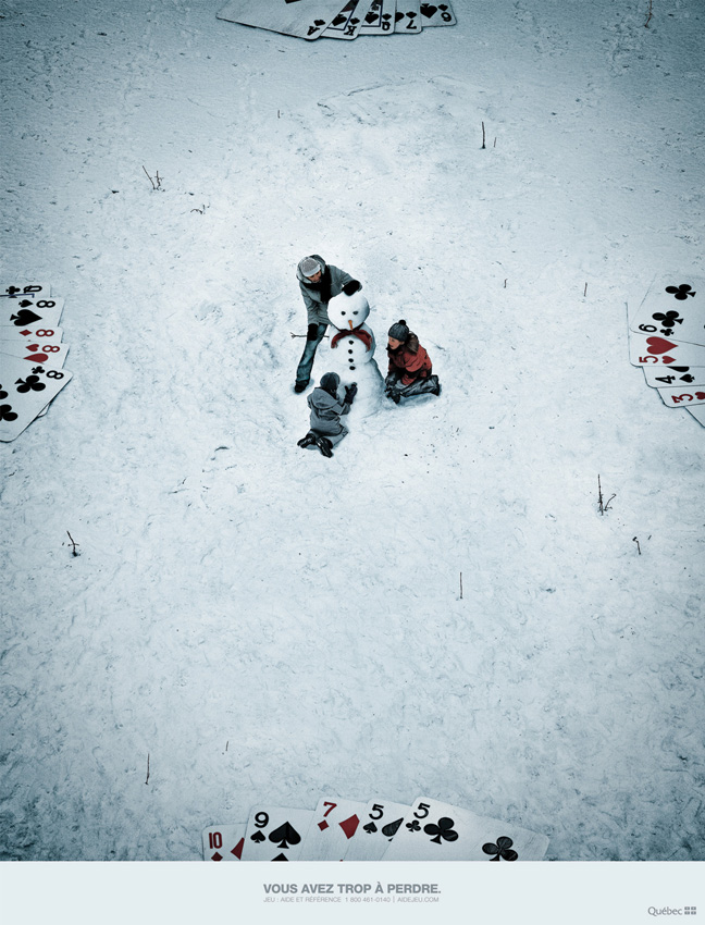 Социалка против азартных игр ставит на кон семьюКампания Министерства здравоохранения КанадыАгентство LG2 Quebec создало социальную кампанию против азартных игр для Министерства здравоохранения Канады. Реклама отличается от прошлогодней кампании такого же рода, созданной для организации Bellwood Health Services агентством Doner. Тогда креаторы действовали более жестко и сравнили азартные игры с наркотиками. А в данном случае, заядлым игрокам просто напоминают о семье, которую они могут потерять, если не ограничат свою страсть - для этого семью игрока буквально поставили на кон в покерной игре. Слоган кампании "У тебя есть слишком много того, что можно потерять". Состав творческой группы Agency: LG2 Quebec, Canada Creative Director/ Writer: Luc Du Sault Art Director: Simon Touzin Art Director: Vincent Bernard Photographer: Marc Couture Illustrator: Simon Touzin, Marc Rivest |