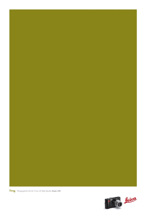 Leica рекламируется однотонными принтами12-кратное увеличение превращает лягушку просто в зеленьБельгийское Publicis Brussels создало печатную кампанию для фотоаппаратов Leica, которая отличается своим минимализмом в количестве деталей. Креаторы просто сделали несколько одноцветных принтов, которые должны продемонстрировать, то насколько сильный zoom имеют камеры Leica. Подписи под ними поясняют, что именно на них изображено - и без этого не обойтись, иначе реклама будет совершенно непонятна. Стоит заметить, что австрийская реклама фотоаппаратов Leica, вышедшая весной, гораздо более выразительна и понятна, хотя так же была посвящена одной из функций этих камер - стабилизации изображения. Состав творческой группыAgency: Publicis Brussels, Belgium Account Director: Sebastien Desclie Executive Creative Director: Alain Janssens - Paul Servaes Art Director: Gilles de Boncourt Copywriter: Eric Becker Producer: Christ Lannoy |