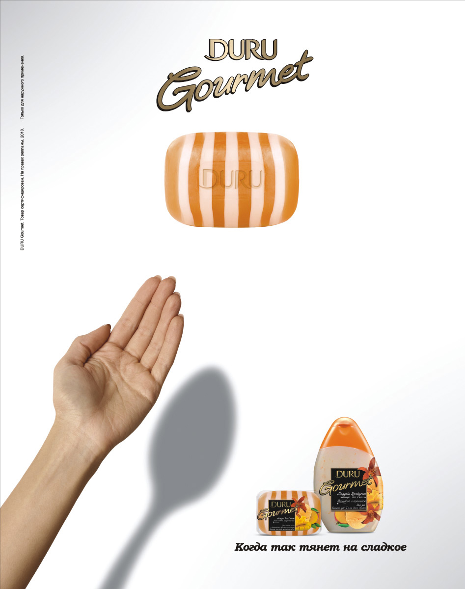 IQ Marketing сделали вкусное мылоСтартовала масштабная рекламная кампания бренда DURU в прессе и на телевидении. Кампания сконцентрирована на серии DURU Gourmet, включающей средства туалетной косметики с отдушками: манговое мороженое, вишневый пирог, карамель. Тема особых "вкусовых" качеств мыла и гелей для душа DURU Gourmet прослеживается в рекламном ролике. Видео транслируется на телеканалах: Первый канал, Россия 1, СТС, РЕН-ТВ, ТВ-3, Домашний, ДТВ. Ролик был адаптирован для российского рынка агентством MEDUSA FILM. Создатели кампании попытались передать вкусность и притягательность таких, казалось бы, обыденных продуктов, как мыло в принт-макетах, креативная идея которых была разработана агентством IQ marketing: Принт-макеты размещены в журналах: "Cosmopolitan", "Коллекция. Караван историй", "Лиза. Добрые советы", "Домашний очаг", "Mini". Ключевой слоган всей рекламной кампании - "Когда так тянет на сладкое". Состав творческой группы: