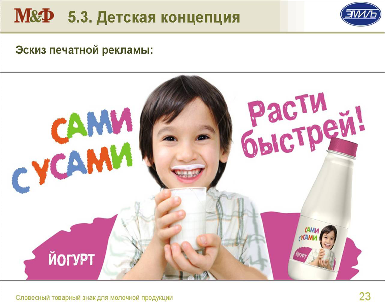 "Мелехов и Филюрин" CYT молокоДля производителя молочной продукции из Казахстана - компании "Эмиль" специалистами Рекламной группы "Мелехов и Филюрин" была разработана новая торговая марка. Агентством был проведен комплекс работ, включавший в себя: разработку концепции бренда, разработку названия и дизайн этикетки. По-казахски слово "CYT" означает "молоко". На первом этапе клиенту было предоставлено пять концепций бренда с подходящими названиями. Из тридцати семи названий клиенту предстояло выбрать одно. В концепцию бренда входили наброски будущих рекламных материалов: слоганов, плакатов, видеороликов и упаковки продукции. На этих слайдах из презентации приведены иллюстративные материалы. На втором этапе был создан дизайн упаковки. В логотипах "Буренкины мечты" разработаны оригинальные шрифтовые начертания. Чтобы не затруднять читаемость довольно длинного и непривычного словосочетания, за основу взяты достаточно нейтральные шрифты из семейства "гротеск", в которые добавлены диагональные ритмические нюансы, соответствующие ритмам остальных элементам композиции этикеток. На варианте с центральносимметричной композицией для наименования продукта также создано оригинальное написание. На третьем этапе клиент провел тестирование дизайна в нескольких торговых точках Усть-Каменогорска. Для этого ограниченным тиражом была выпущена небольшая партия продукта с измененным названием.