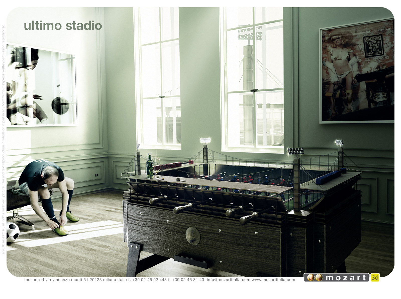 Роскошные апартаменты внутри маленького автоСамопрезентация итальянской компании MozartМиланская компания Mozart, которая занимается трехмерным моделированием, выпустила серию принтов для презентации своих услуг. Реклама показывает, что специалисты компании легко сделают трехмерную модель совершенно любого помещения, будь то спортивный стадион внутри дома или квартира в автомобиле. Состав творческой группыAdvertising Agency: Mozart, Milan, Italy Creative Director: Alex Koban |