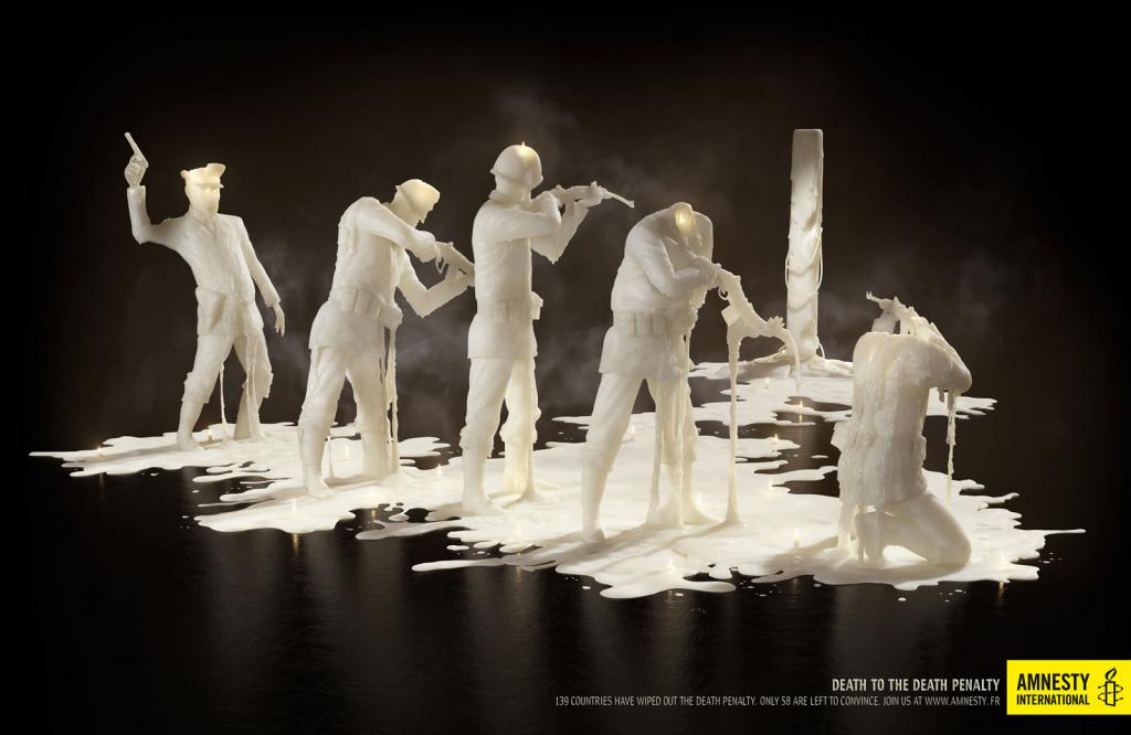 Amnesty International казнит смертную казньРадикальная кампания правозащитной организацииПарижский офис TBWA выпустил новую печатную рекламу для известной правозащитной организации Amnesty International. Серия принтов изображает сцены казни, но на этот раз правозащитники выступают не против них, а, наоборот, - за. Дело в том, что креаторы показали на плакатах сцены казни самой смертной казни. Там расстреливают столб, к которому привязывают для расстрела, рубят плаху и сажают электрический стул на него же. При этом все изображено в виде восковых фигурок, словно бы кто проводил какой-то обряд Вуду, чтобы наложить проклятие на традицию лишать людей жизни за преступления. Состав творческой группыAgency: TBWA Paris Creative Director: Remi Noel, Eric Holden Art Director: Philippe Taroux Copywriter: Benoit Leroux Producer: Mecanique General Art buyers: Barbara Chevalier, Doroth?©e Dupont |