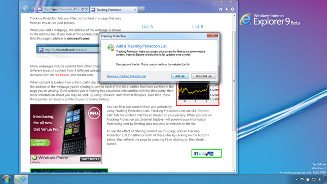 Браузер IE9 защитит пользователей от слежкиНовая версия браузера от Microsoft позволит блокировать элементы, отслеживающие сетевую деятельность пользователя