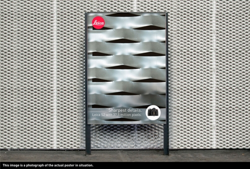 Ультрадетальная наружка LeicaВ рекламе делают упор на детализации передачи изображенияШвейцарское агентство Advico Y&R AG установило несколько уличных баннеров для рекламы фотоаппарата Leica S2. Кампания сосредоточена на том, чтобы показать насколько качественные и детальные снимки можно получить с помощью этой камеры с разрешением в 37,5 мегапикселей. Чтобы показать пример снимка Leica S2, креаторы разместили в Цюрихе баннеры, которые передают невероятную детализацию стены, на фоне которой расположена реклама. Состав творческой группыAdvertising Agency: Advico Y&R AG, Zurich, Switzerland Creative Director: Christian Bobst Copywriter: Johannes Raggio Art Director: Lukas Wietlisbach Photographer: Luca Schneider Typographer: Luca Schneider Consultant: Sandro Breu |