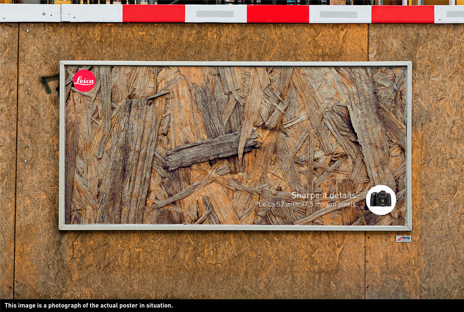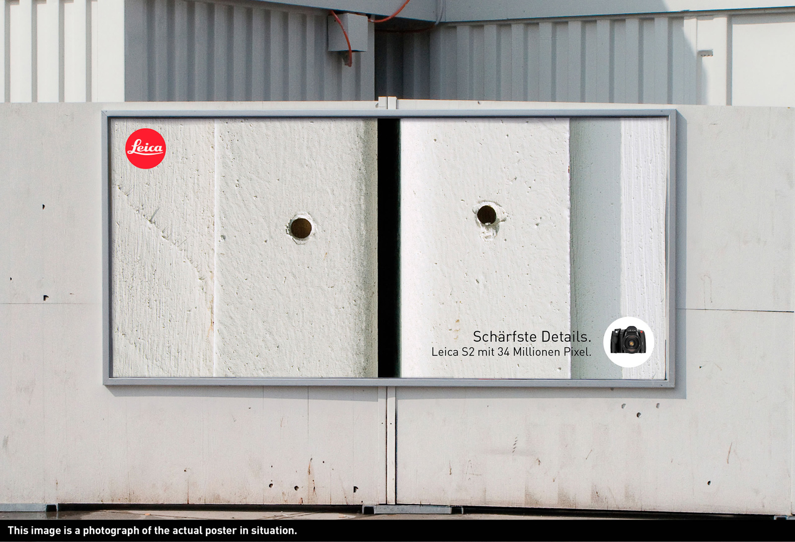 Ультрадетальная наружка LeicaВ рекламе делают упор на детализации передачи изображенияШвейцарское агентство Advico Y&R AG установило несколько уличных баннеров для рекламы фотоаппарата Leica S2. Кампания сосредоточена на том, чтобы показать насколько качественные и детальные снимки можно получить с помощью этой камеры с разрешением в 37,5 мегапикселей. Чтобы показать пример снимка Leica S2, креаторы разместили в Цюрихе баннеры, которые передают невероятную детализацию стены, на фоне которой расположена реклама. Состав творческой группыAdvertising Agency: Advico Y&R AG, Zurich, Switzerland Creative Director: Christian Bobst Copywriter: Johannes Raggio Art Director: Lukas Wietlisbach Photographer: Luca Schneider Typographer: Luca Schneider Consultant: Sandro Breu |