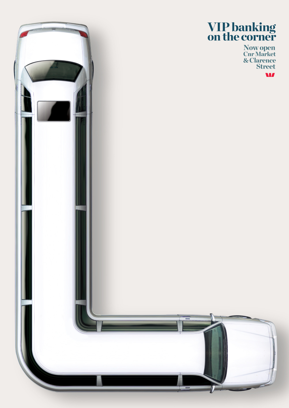 Westpac Bank изогнул признаки богатстваРеклама, посвященная открытию нового офиса банкаАвстралийское агентство Lavender выпустило серию принтов для рекламы банка Westpac. Кампания посвящена открытию нового офиса банка в Сиднее на углу двух пересекающихся улиц. По этой причине как раз и используется странная коммуникация со сгибанием лимузинов и яхт под прямым углом. Таким образом сообщается, что теперь банковские услуги VIP категории стали еще более доступы и расположены буквально на углу. Состав творческой группы |