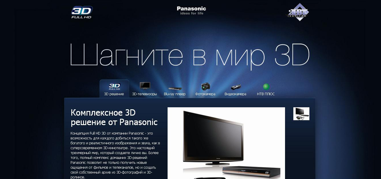 Panasonic устраивает жизнь в 3DКомпания Panasonic запустила новый спецпроект на сайте iXBT.com - "Жизнь в 3D". Участникам проекта требуется написать эссе и снять видеоролик на одну из трех предложенных конкурсных тем: "Зачем нужно 3D?", "3D-реальность уже сейчас!" и "3D-будущее". Главный приз, за который будут бороться все участники - 3D телевизор Panasonic VIERA TX-PR42GT20. Прием эссе будет проходить на ресурсе с 15 по 30 декабря 2010 года, а голосование по работам начнется 20 декабря 2010 года и продлится до 10 января 2011. По итогам голосования будут объявлены финалисты, которые попадут во второй этап. В финале участникам будет необходимо собственными силами снять видеоролик, в котором они ответят на несколько вопросов, приготовленных специалистами компании Panasonic, и рассказать о современных 3D-технологиях. Спецпроект для компании Panasonic организовывает агентство веб-коммуникаций ErstMedia. |