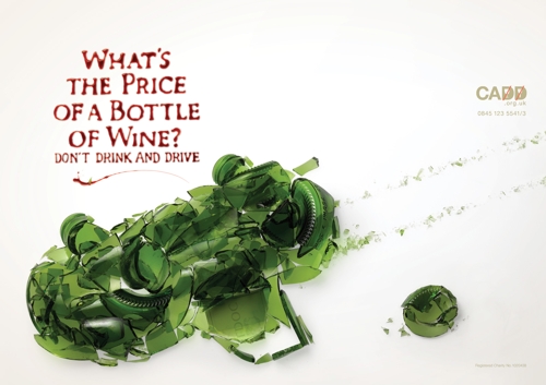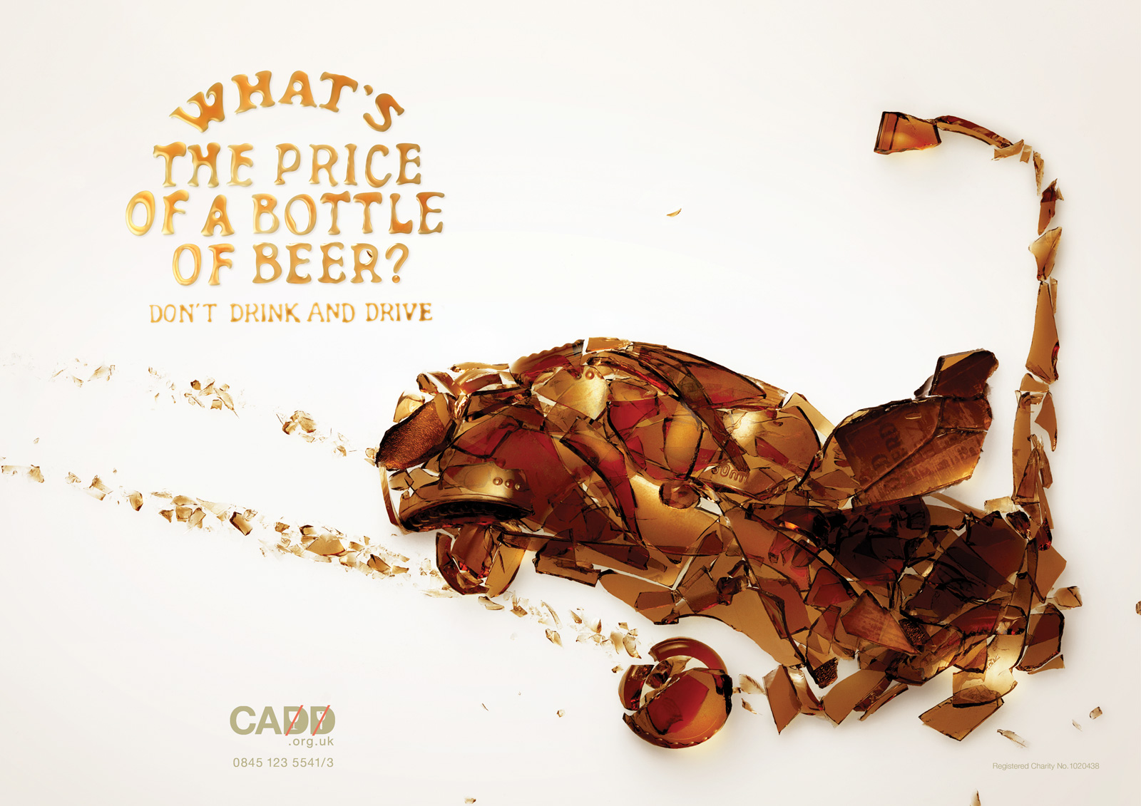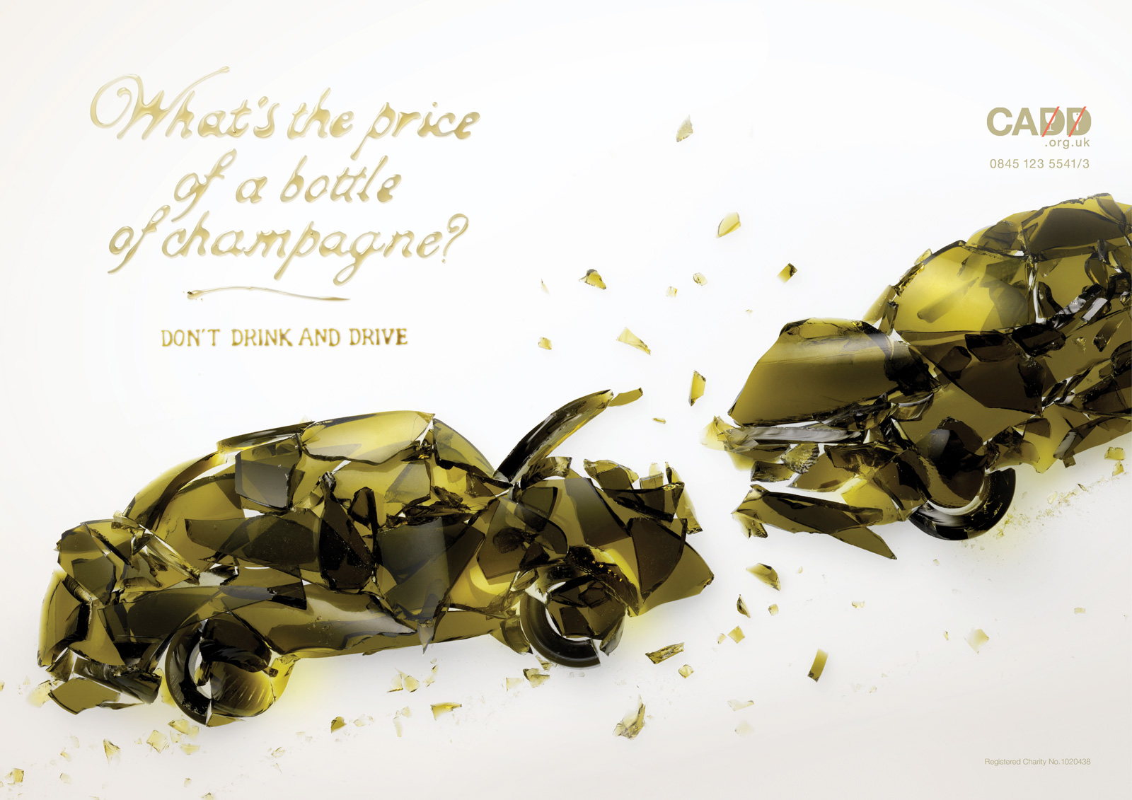 Сколько стоит выпивка за рулем?Кампания против вождения в пьяном виде от организации CADDJWT London выпустило серию принтов для организацииCADD или "Кампания против пьяного вождения". В рамках кампании против пьянства за рулем, креаторы решили задать вопрос о том, сколько на самом деле стоит выпитьалкоголь перед тем как сесть за руль автомобиля. Для этого они изобразили сцены дорожно-транспортных происшествий, сложив их из осколков бутылок из-под различных напитков. Посыл кампании традиционный - не пить за рулем, но реализация довольно креативна и заметна. Состав творческой группы |