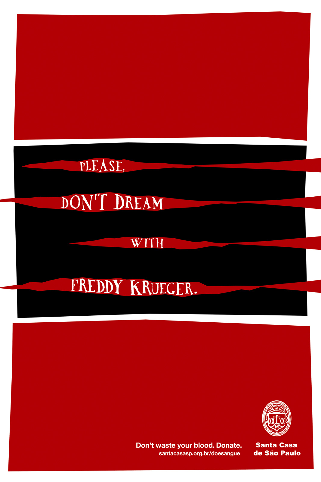 Креаторы Y&RSäoPaulo придумали отличную и забавную рекламу, призывающую людей сдавать кровь в больнице SantaCasa. Агентство выпустило серию принтов, в которых вспоминает различных персонажей из фильмов ужасов, а также опасные действия в реальной жизни, из-за которых люди могут терять свою кровь. Аудиторию призывают быть осторожнее и не тратить свою кровь попусту - лучше пожертвовать ее в больницу, где она нужнее.