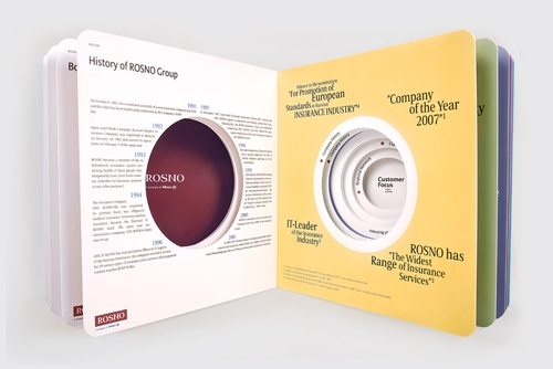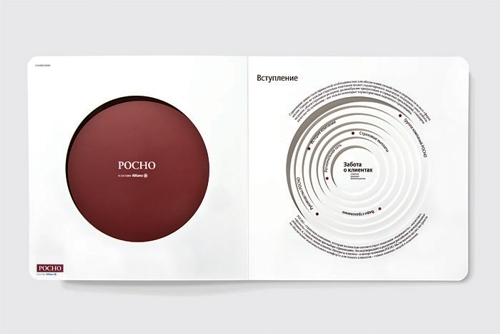 Центростремительный буклет для РОСНОВ основу концепции корпоративного буклета компании РОСНО лег принцип заботы о клиенте. Он нашел образное и буквальное отражение на страницах нового буклета. Как считают в агентстве Deza, дизайнерское решение подкупает своей простотой и наглядностью: только основная информация, которая может быть интересна клиентам и партнерам РОСНО, и чёткие иллюстрации ценностного предложения компании. Подобно планетной системе, которая держится на силе притяжения центра, клиент - центр системы РОСНО, и все "вращается" вокруг него. Конструкция буклета такова, что клиент всегда находится в центре внимания - в центре внимания зрителя и в центре внимания компании. Буклет издан на русском и английском языках. Для желающих получить более развернутую информацию буклет комплектуется CD с годовым отчетом компании.