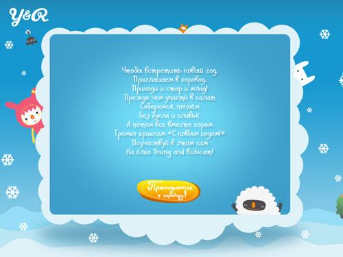 Приглашаем в хоровод. Приходи и стар и млад! Прежде чем упасть в салат Соберемся, попоём Без бухла и оливьё, А потом все вместе хором Громко крикнем "С новым годом!" Поучаствуй в этом сам На ёлке Young and Rubicam! Присоединиться к хороводу! |