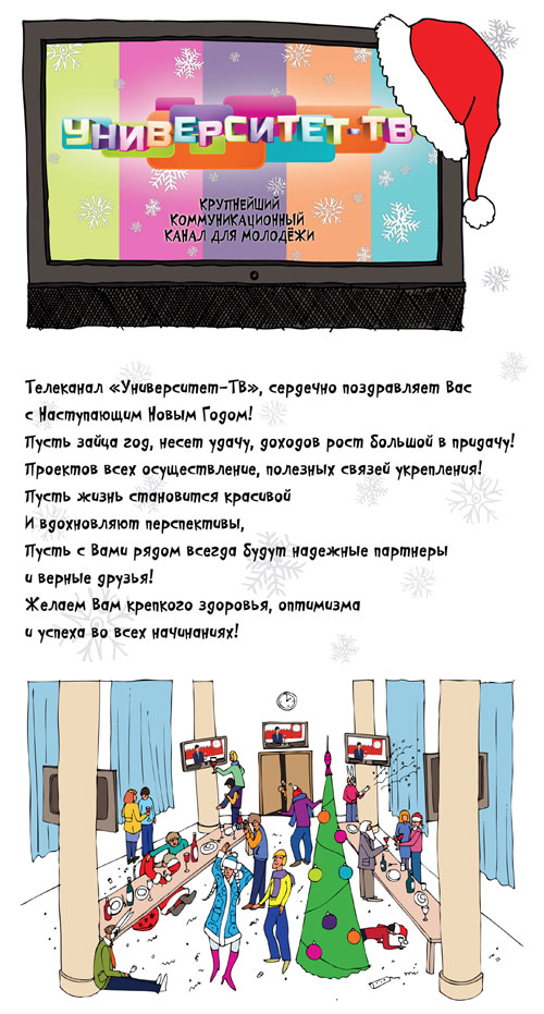 Университет-ТВ поздравляет с Новым Годом!Канал для молодежи "Университет-ТВ" поздравляет с наступающим Новым Годом и желает всего самого наилучшего. Для своих партнеров в Clear Vision Group приготовили приятные сюрпризы в виде актуальных на 2011 год подарков и сувениров, дизайн которых разрабатывался креативной командой Clear Vision Group.