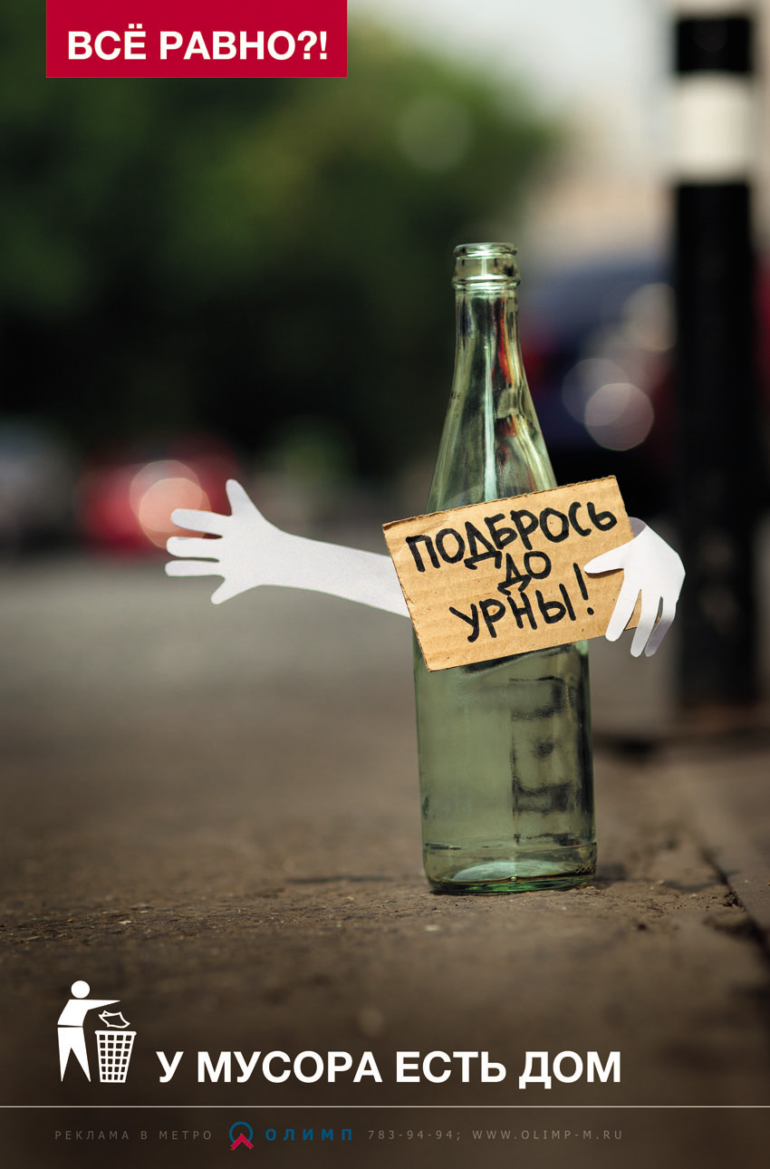 News Outdoor напомнили - у мусора есть домС 29 декабря 2010 года в столичном метрополитене стартует совместная некоммерческая акция компаний "Олимп", News Outdoor и Группы АДВ по привлечению внимания жителей мегаполиса к проблемам экологии, в частности к загрязнению горожанами бытовыми отходами улиц, скверов и других частей нашего прекрасного города. Кампания проходит в рамках социального проекта "Все Равно?!". Кампания пройдет в Москве и в 20 городах России. Будет задействовано более 3000 поверхностей: щиты 6х3, ситиформаты, пиллары, скамейки. Помимо поверхностей наружной рекламы, будут задействованы и рекламные конструкции Московского метрополитена: эскалаторные щиты и роллерные дисплеи.Креативная концепция социальной кампании в защиту окружающей среды от мусора со слоганом «У мусора есть дом» разработана и создана АМК Znamenka. Цель акции - поддержка социальной активности горожан, воспитание ответственности, экологического мировоззрения, бережного отношения и любви к окружающей природе и местам проживания. Управляющий директор News Outdoor Максим Ткачев комментирует: «Новый флайт кампании «Все равно?!» вновь призывает к активной жизненной позиции. Именно от каждого из нас зависит, будет город чистым или грязным. Если каждый из нас донесет мусор до урны, он не только поможет городу, но и одержит маленькую победу над своей ленью и равнодушием». «В рамках этой кампании мы поднимаем очень важную для каждого проблему, - говорит Председатель Совета директоров Группы АДВ Дмитрий Коробков. - Для нас естественно поддерживать порядок в доме, но многие не задумываются о необходимости заботы о природе и чистоте городских улиц. Наш мир катастрофически загрязняется - и это дело рук человека. Мы должны помнить, что сохранение природы зависит только от нас, ведь «У мусора есть дом». Напомним, что в рамках кампании "Все равно?!" прошла скандальная социальная реклама против курения и в поддержку бездомных людей, для них предлагалось собрать одежду.