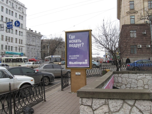 "Выбирай" ответил на вопросы ростовчанЖурнал "Выбирай" запустил в Ростове-на-Дону масштабную рекламную кампанию на сити-форматах. Целью кампании стала поддержка отдельных тематических рубрик журнала среди читателей и рекламодателей. Основной композиционный принцип рекламных сообщений этой серии - "Вопрос-Ответ". Из содержимого сити-форматов горожане могут узнать "куда послать тещу", "о чем поговорить", "где все", "чего хотят китайцы" и много других столь же "полезных" вещей. По замыслу креативной группы ростовской редакции "Выбирай", такая игровая форма подачи рекламы должна стимулировать интерес аудитории к отдельным рубрикам журнала и показать, что "Выбирай" действительно является полноценным гидом по городским услугам и развлечениям. Калина Петроченкова, PR-менеджер журнала "Выбирай" в Ростове-на-Дону, говорит, что хотелось сделать точечную рекламу, которая бы рассказывала аудитории о том, что можно найти в журнале: "Имиджевая реклама все-таки больше направлена на повышение узнаваемости бренда в целом, а мы попытались найти оптимальную форму для полноценного промо содержательной части "Выбирая"". |