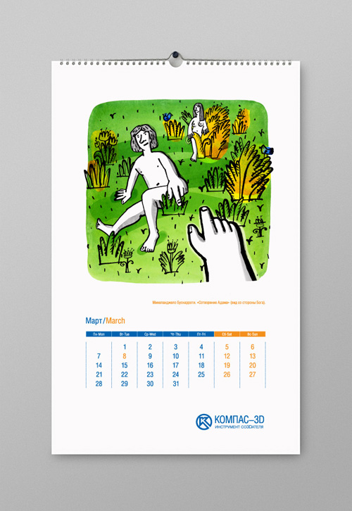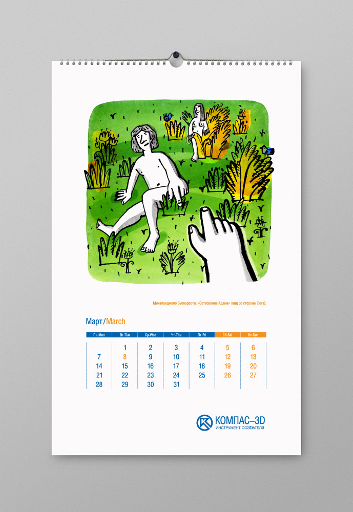 Другая сторона мировых шедевров от агентства GreatКомпания "АСКОН", разработчик программного обеспечения, посвятила календарь на 2011 год своей программе трёхмерного моделирования "КОМПАС-3D". Теперь на всё можно посмотреть с другой стороны. И, как считают в агентстве Great, поворот сюжета, скорее всего, окажется неожиданным. Состав творческой группы: Эккаунт-менеджер: Светлана ЛуккаАрт-директор: Александр Ишуков Иллюстратор: Ефим Пономарёв Производство: типография Great Print