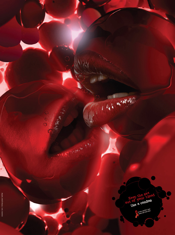 Israel Aids Task Force просит не пускать секс в кровьРеклама организации, борющейся с распространением СПИДа и ВИЧShalmor Avnon Amichay/Y&R Interactive TelAviv создало странноватый принта для некоммерческой организации Israel Aids Task Force, направление деятельности которой в ведется в области предупреждения людей об опасности СПИДа и ВИЧ и профилактике этих заболеваний. Принт аллегорически изображает заражение, с помощью красных кровяных телец, которые преисполнены страстью и, судя по всему, жаждут секса. Реклама в свою очередь призывает не пускать секс в кровь и пользоваться презервативами.