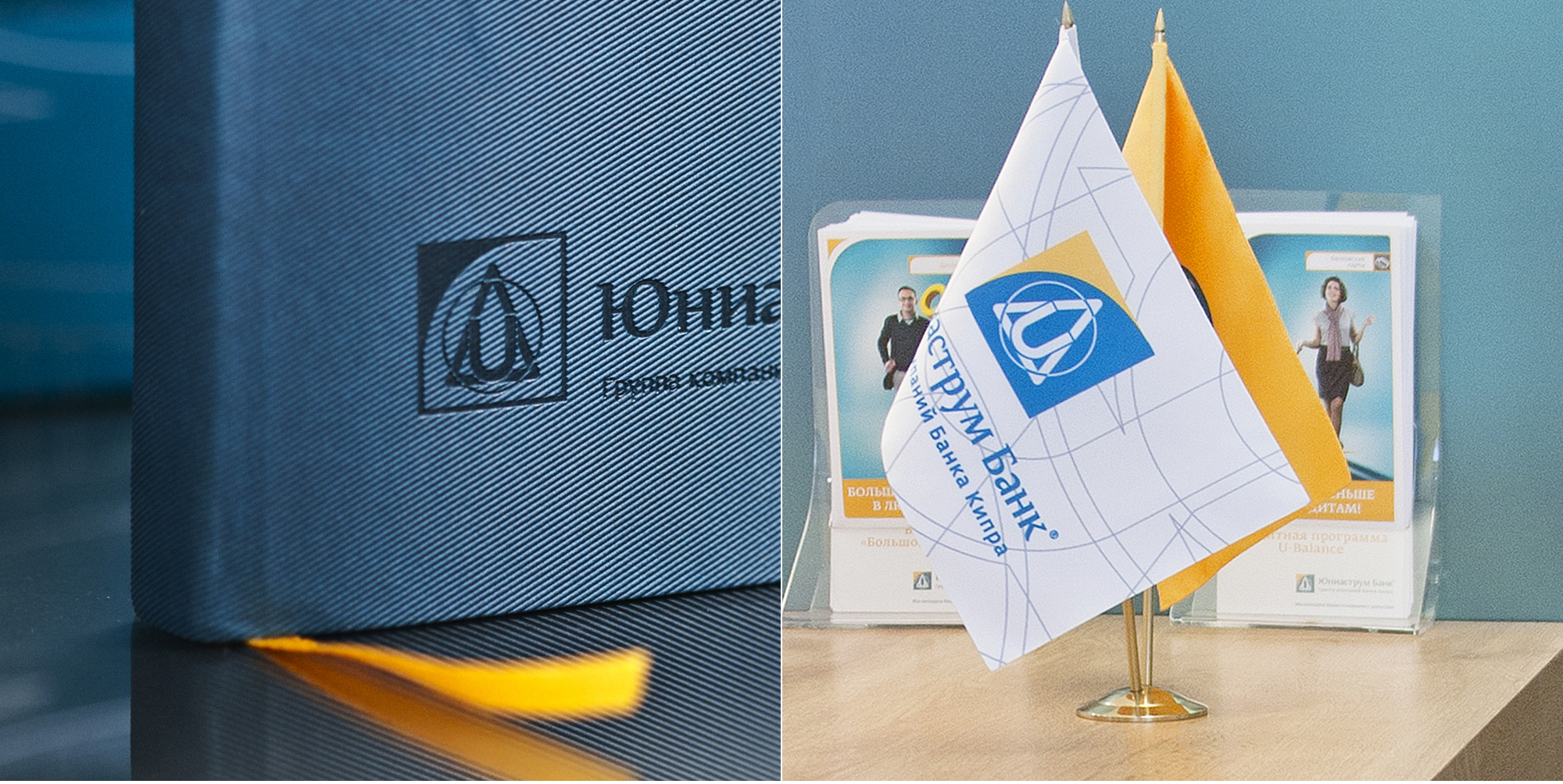 "Юниаструм банк" и Bank of Cyprus Group объединились в логотипеВ FRONT:DESIGN brand service atelier завершены работы по ребрендингу "Юниаструм банка", связанному со вступлением банка в международный холдинг Bank of Cyprus GroupЦелью проекта было "поженить" комплексы идентификации двух брендов, обновить существующий стиль "Юниаструм банка", с учетом сохранения преемственности элементов старого фирменного стиля. Как сообщают в агентстве, качественные обновления коснулись не только логотипа. Специалистами агентства была разработана система дизайна, состоящая из комплекса визуальных средств: цветовая гамма, основы типографки, фон и орнаменты, графические элементы, пиктограммы, стиль изображений. Промежуточным итогом рестайлинга стало создание брендбука с подробным описанием принципов развития комплекса и регламентом по использованию визуальных элементов бренда. В рамках контракта были оказаны консалтинговые услуги: бренд-аудит, авторское сопровождение производства рекламных конструкций и маркетинговых материалов. В результате совместной и плодотворной работы Агентства, руководства "Банка Кипра", "Юниаструм банка" и группы производственных компаний - визуальные составляющие бренда воплотились в системе мерчандайзинга, оформлении интерьера и экстерьера отделений, корпоративном стиле и рекламных материалах банка.