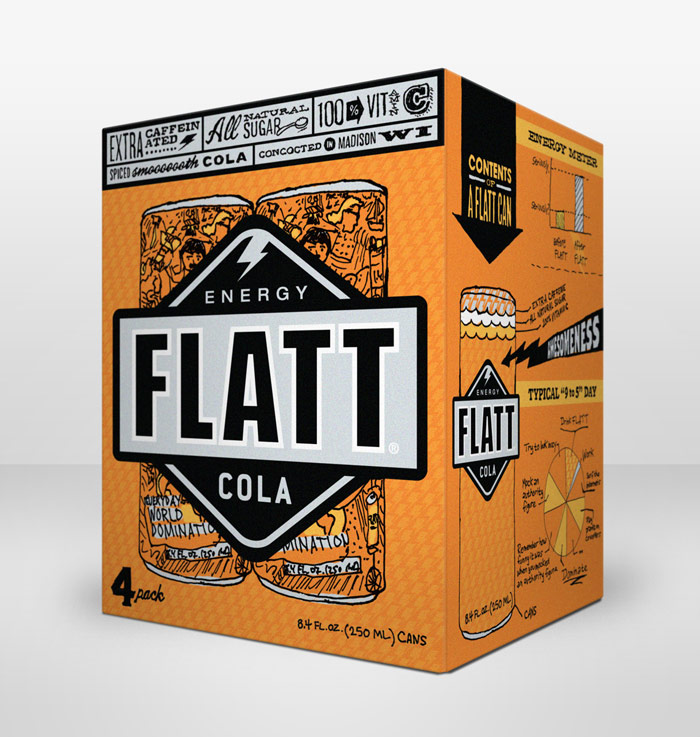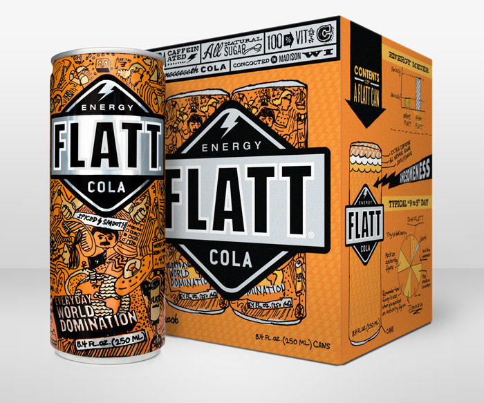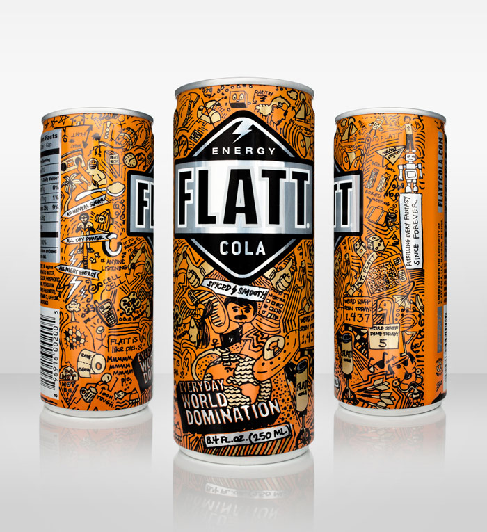 Flatt Energy Cola - энергетик, преисполненный действияСуматошный дизайн упаковки от агентства HiebingНапиток Flatt Energy Cola придуман двумя выпускниками колледжа в городе Мэдисон в Висконсине. Они хотели создать напиток, который был бы очень мягким и в то же время немного пряным. При этом они не пытаются убедить кого бы то ни было в том, что этот энергетик побудит людей заняться экстремальным спортом вроде скалолазания и тому подобного. Суть Flatt Energy Cola проста - обеспечить необходимое количество сахара, витаминов и кофеина, которые необходимы человеку для преодоления сонливости и получения заряда бодрости на день В соответствии с этим дизайн упаковки старается подчеркнуть возможность проведения чрезвычайного насыщенного дня - он использует яркие цвета и мешанину разнообразных рисунков, олицетворяющих как работу, так и отдых. Веселая стилистика рисунков также призвана изначально развеять скуку - предполагается, что потребители могут с интересом изучать упаковку, забыв о сонливости. Состав творческой группы |