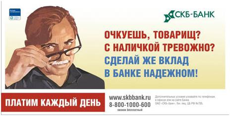Рекламная популярность СКБ-банка началась, как вероятно кто-то помнит, с макетика, который содержал коварное, провокационное стихотворение: