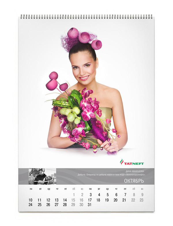 РА «Бакара» одело сотрудниц «Татнефти» в цветыКорпоративный календарь без участия профессиональных моделей иногда смотрится интереснееПеред рекламным агентством "Бакара" (Казань) была поставлена задача представить ОАО "Татнефть" VIP-клиентам и бизнес-партнерам. Каналом коммуникации выступал корпоративный календарь, в съемках которого традиционно принимали участия профессиональные модели. Рекламное агентство реализовало проект с участием реальных сотрудниц Заказчика. Был подобраны 12 девушек, которые представили все типы женской красоты. Каждой участнице достался образ, соответствующий ее индивидуальности и цветам того или иного месяца. Проект так в итоге и назвали "Цветы компании". На странице рядом с художественной фотографией размещался будничный фотопортрет. Основное послание календаря - каждая женщина может быть хорошим сотрудником, но в хорошей компании Женщина расцветает.