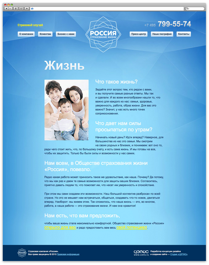 Для "России" провели ребрендингВ студии дизайна "ЦЭТИС" был разработан новый логотип, фирменный стиль и сайт Общества страхования жизни "Россия"